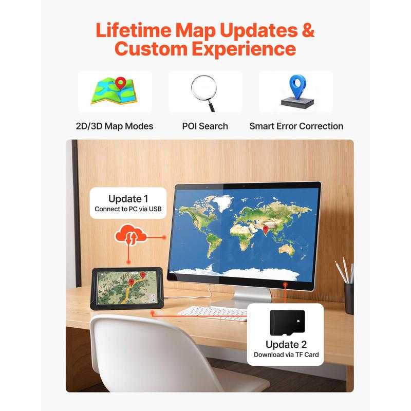 • Customizable Settings: This GPS navigator for car supports zip code, address, coordinate, favorite, and POI search. It provides route planning options, GPS/map time display, FM transmission to car stereo (not FM radio), and smart voice guidance