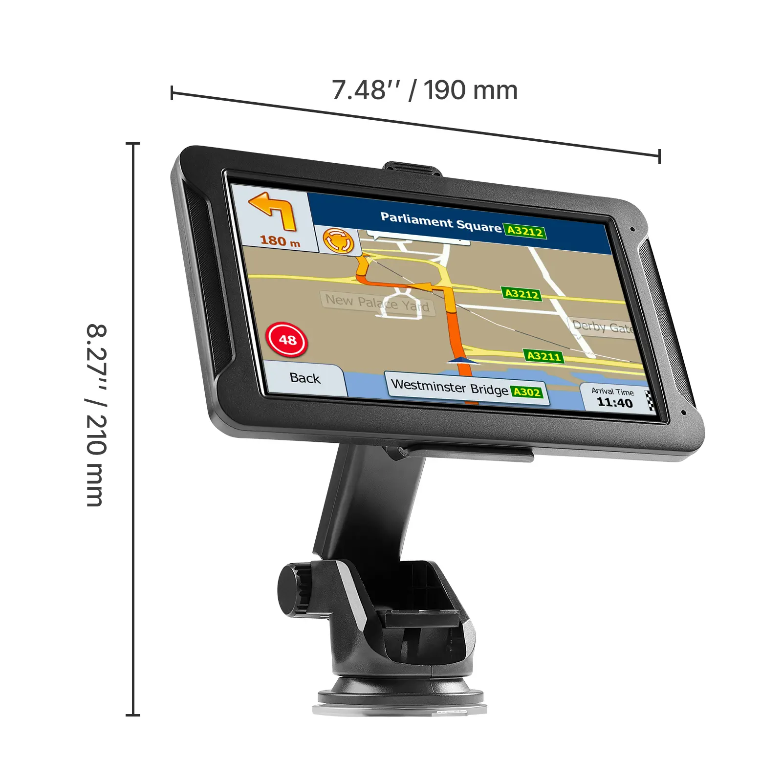 • Preloaded Maps: Our car GPS comes with 16GB storage (with 1GB RAM), TF card expandable, built-in 1200mAh battery and car charging cable. The 7" anti-glare HD screen (800x480) features responsive touch, tempered glass, and high-brightness display
