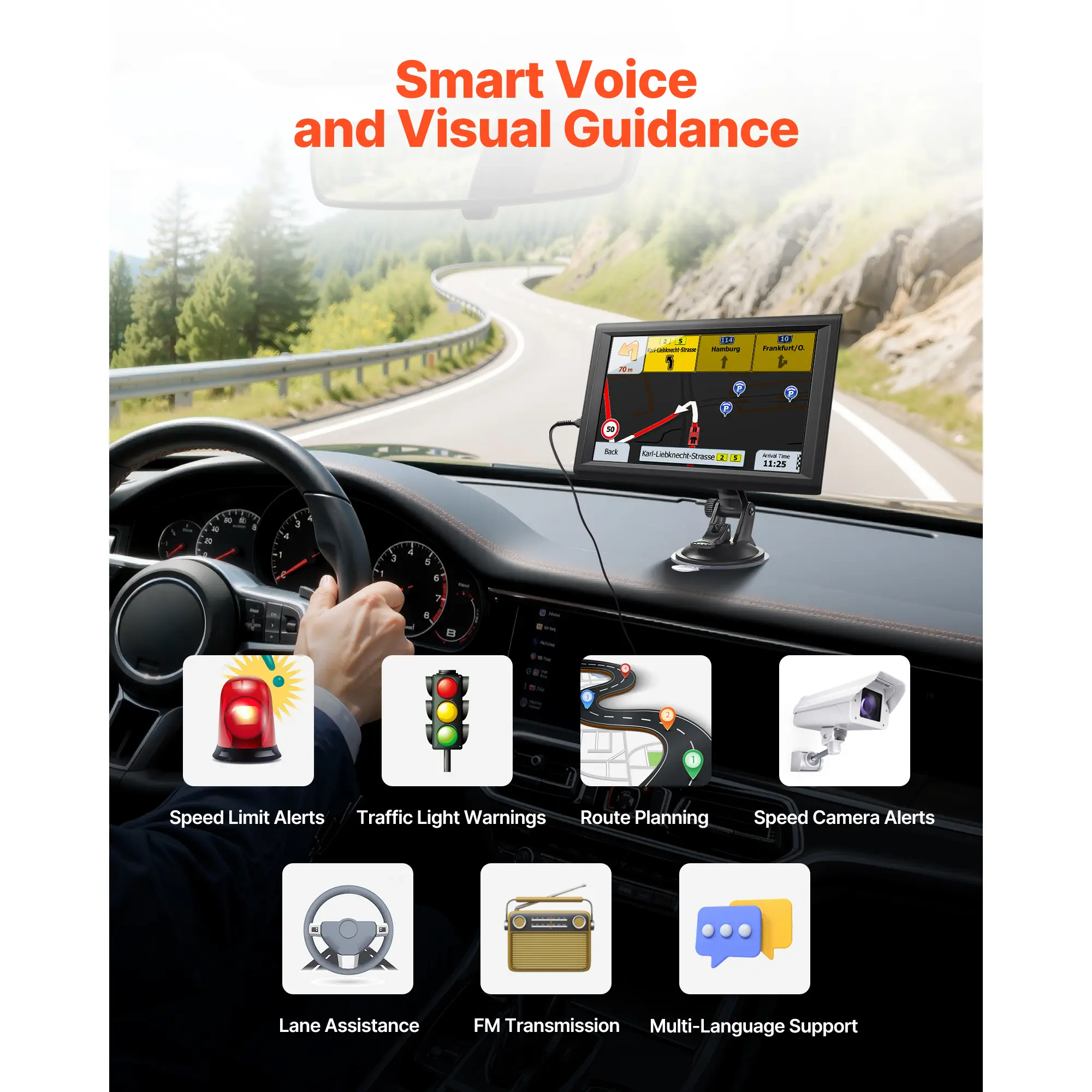 • Accurate Navigation: The GPS for trucks features overspeed alerts, speed camera and traffic light warnings to help you avoid fines. Built-in dash cam and lane assist keep you secure. Clear multiple languages voice guidance is ideal for long trips