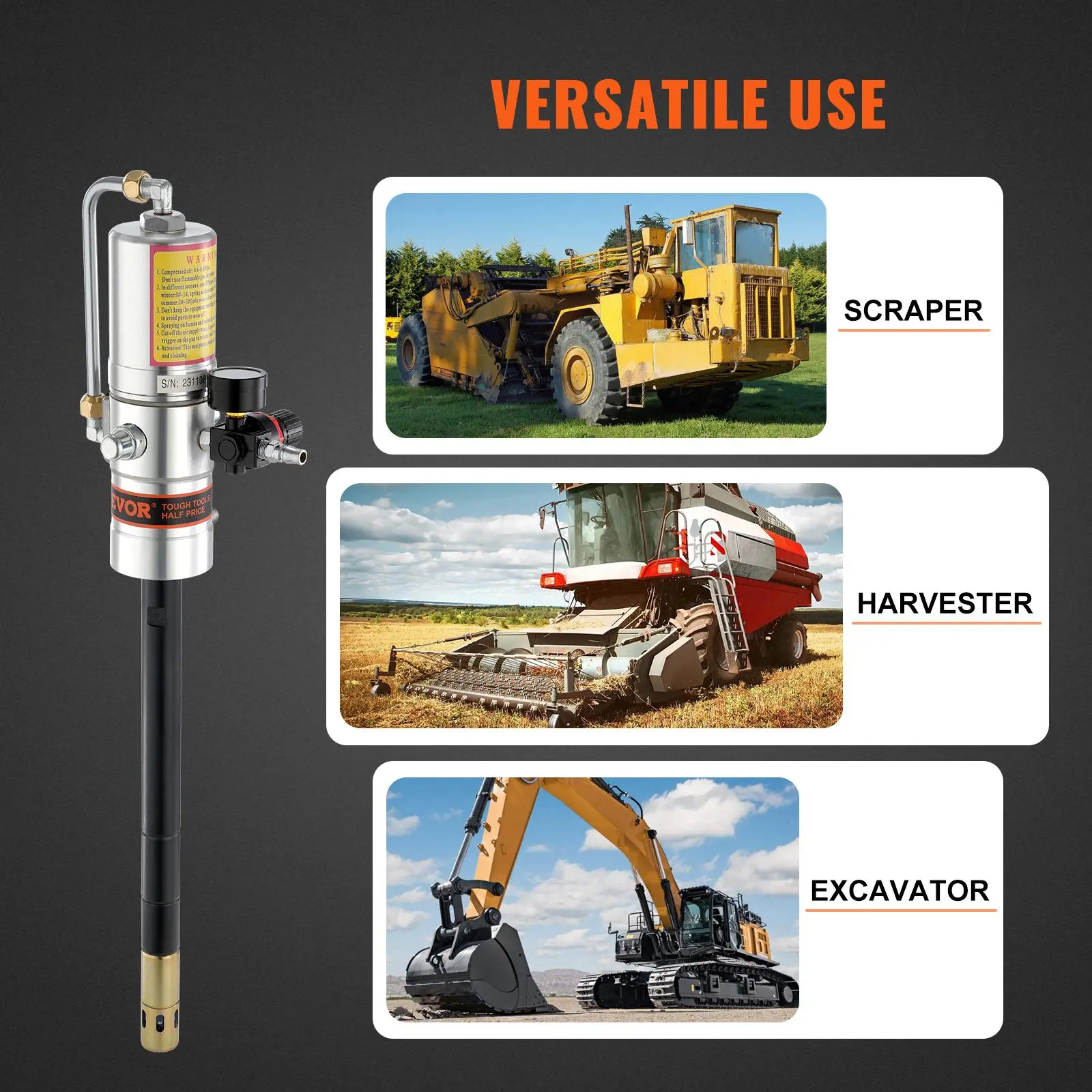 5. VEVOR Grease Pump, TikTokShopBlackFriday, 50:1 Pressure Ratio Air Operated Grease Pump with 13 ft High Pressure Hose and Grease Gun, Pneumatic Grease Pump, Portable Lubrication Grease Pump with 360° Swivel Grease Gun Head