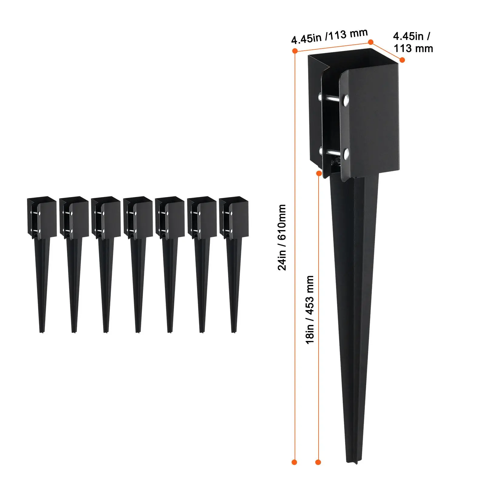 • Fits 3.5” Wood: The square spike has a total height of 24 inches, a nail length of 18 inches, and an inner width of 3.5 inches. It is suitable for 3.5” x 3.5” square timber, providing excellent support.