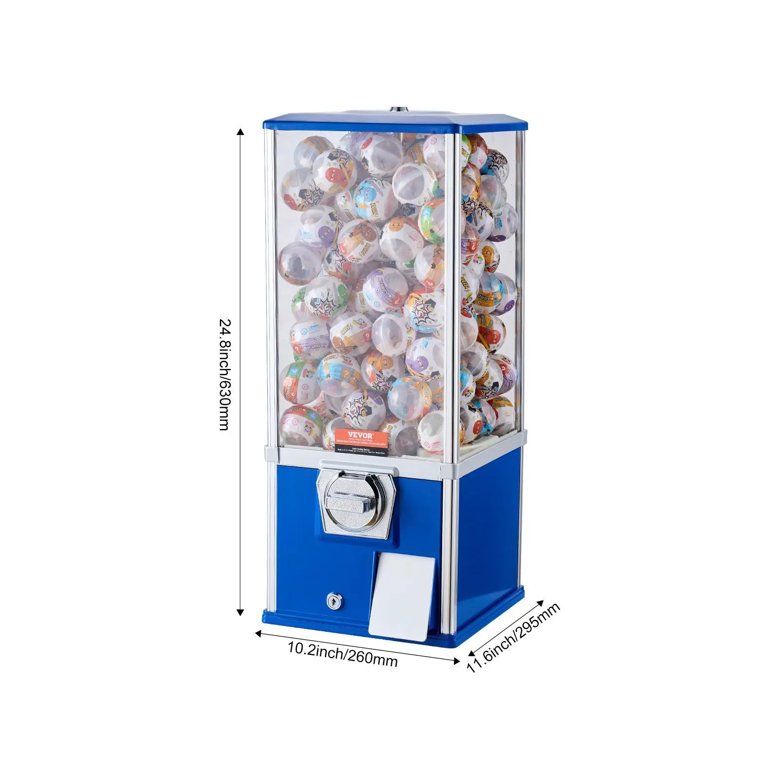 • Protecting Capsule Toys and Coins: Our gumball machine's top cover is equipped with a lock that can only be opened with our matching key. Therefore, no one can take anything inside without your permission. Additionally, the capsule exit is fitted with a metal door guard, cushioning the goods and preventing them from falling onto the ground.