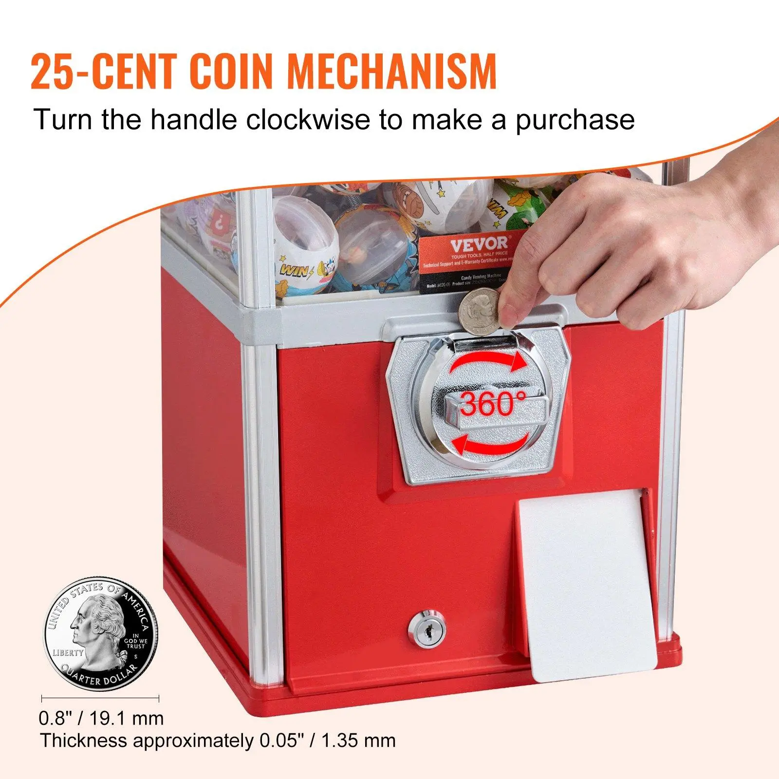5. VEVOR Gumball Machine for Kids, TikTokShopBlackFriday, 25" Height Home Vending Machine, PS Bouncy Balls Dispenser, Hold 230 Capsule Toys, Rectangle Bubble Gum Machine for Game Stores, Coin Operated Gumball Bank, Red