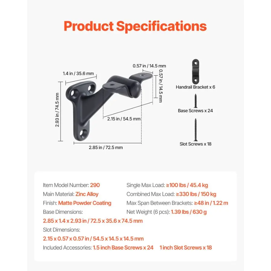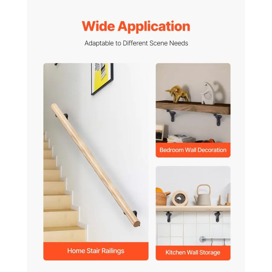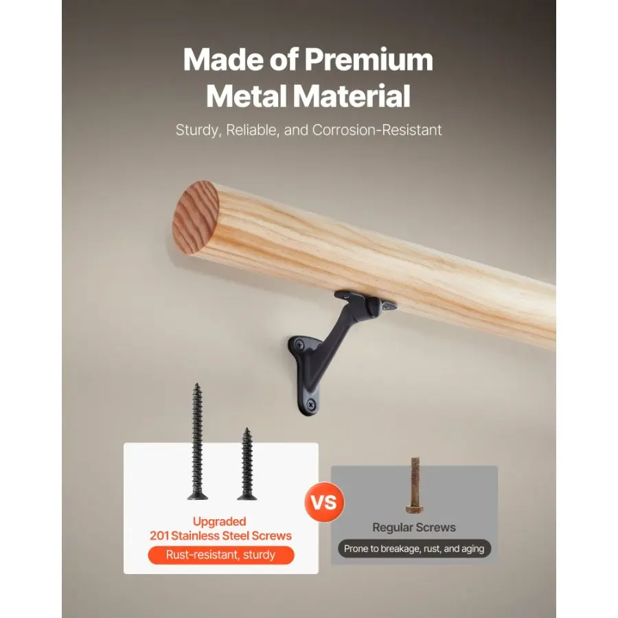 VEVOR Handrail Hardware Bracket, 6 Packs Heavy Duty Hand Rail Brackets, Flexible Angle Adjustment Easy Install, Stair Railing Hardware for Stairways Handrail, Staircase, Matte BlackVEVOR Handrail Hardware Bracket, 6 Packs Heavy Duty Hand Rail Brackets, Flexible Angle Adjustment & Easy Install, Stair Railing Hardware for Stairways Handrail, Staircase,Matte Black