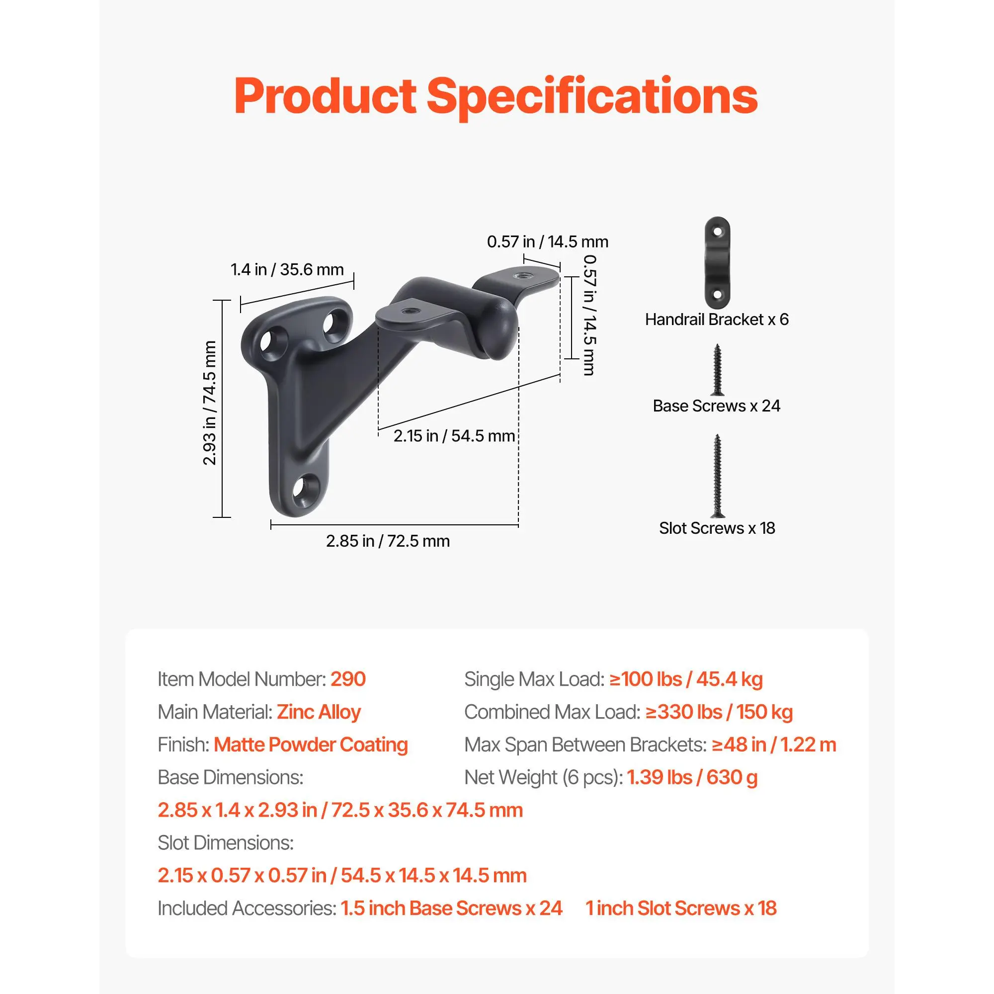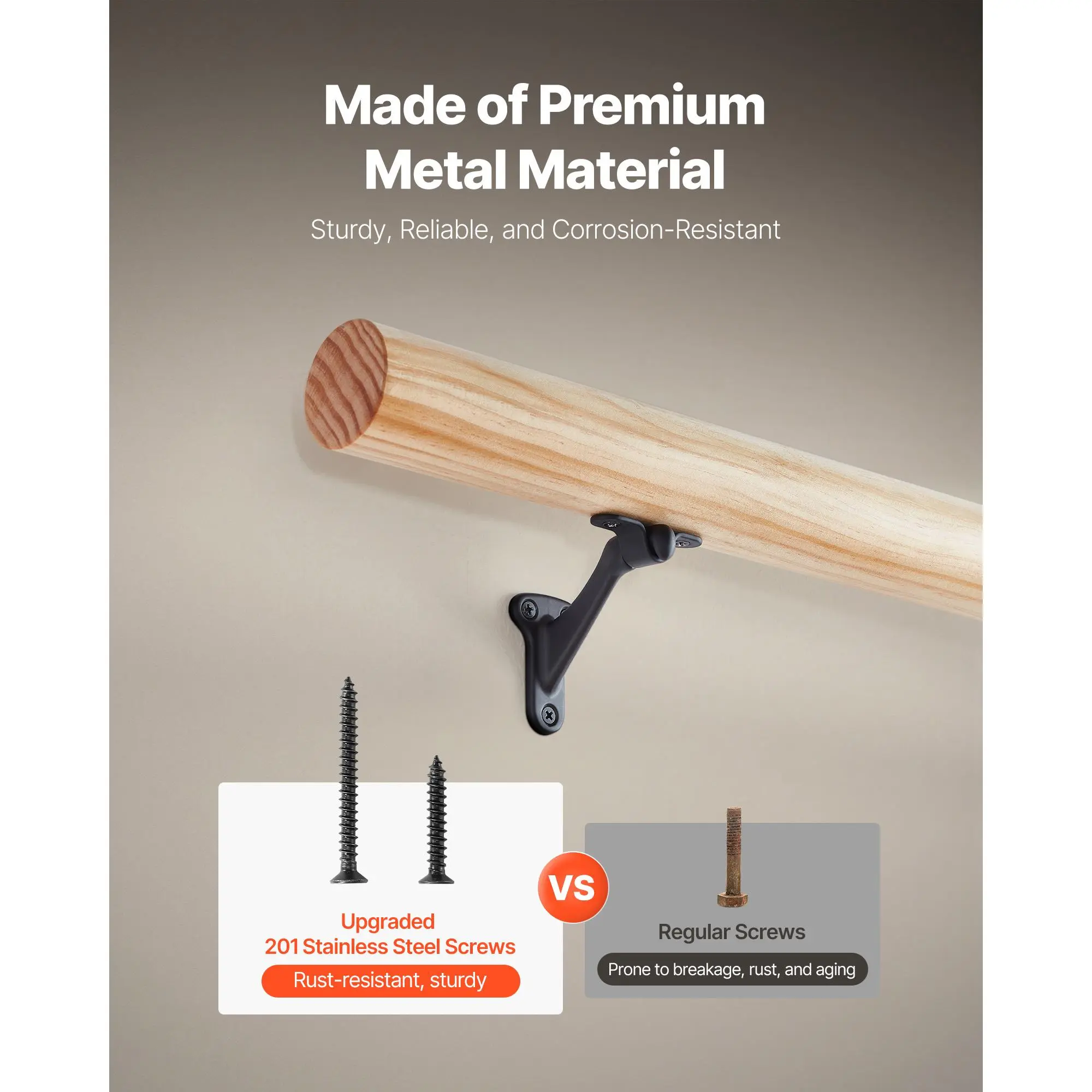 • High-Quality Material: The zinc alloy handrail bracket has a matte powder-coated finish for enhanced aesthetics and durability, offering corrosion-resistance and wear-resistance. With stainless steel screws, it provides long-lasting, reliable support for your stair handrail