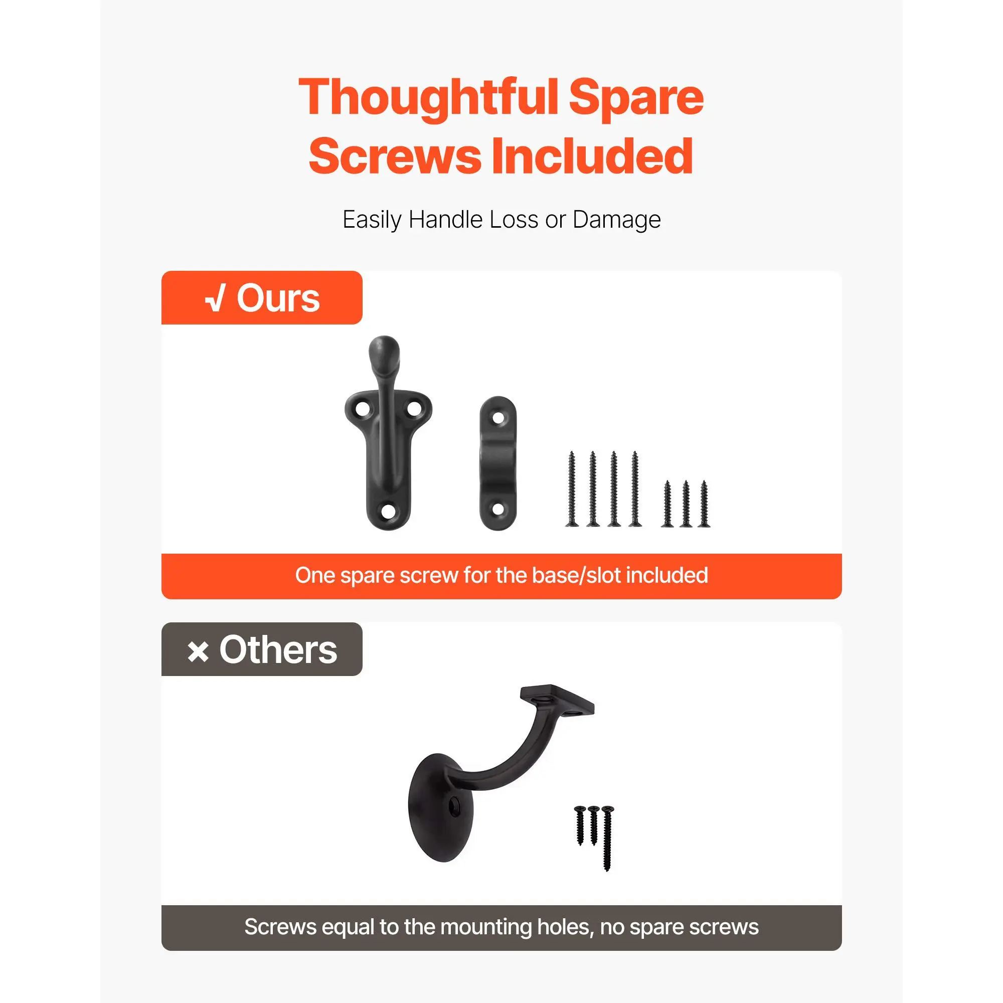 • Extra Spare Screws: Includes one extra base screw and one extra slot screw, allowing quick replacement if screws are lost or damaged during installation or use, ensuring uninterrupted functionality and peace of mind