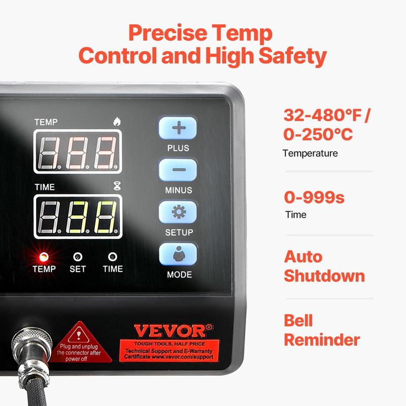 • Digital Control & Display: The precise digital controller is embedded with dual-screen displays, easy to operate & control. The silicone button boasts a comfortable touch feeling. Press (+/-) to switch ℃ and °F at will