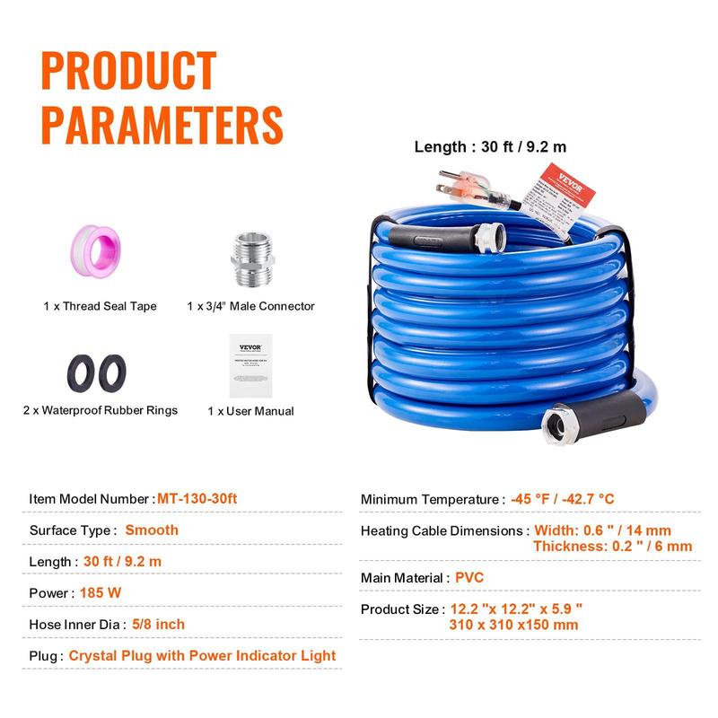 • Fast & Low-Energy Heating: The plug lights up when heating. The heated water hose has a variable frequency heating system that activates at 46°F/8°C and stops at 59°F/15°C, reducing energy use. It features a 0.6"/14 mm heating wire for faster heating, wrapped in a smooth outer layer for efficient heat distribution.