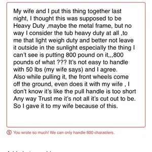 ·Flexible Handle: The dual-purpose handle serves as both a direct lifting handle for easy transport and can connect to vehicles like tractors or lawnmowers for efficient long-distance towing. Whether you're doing yard chores or moving goods across large farms and lawns, this dump wagon is versatile and convenient.