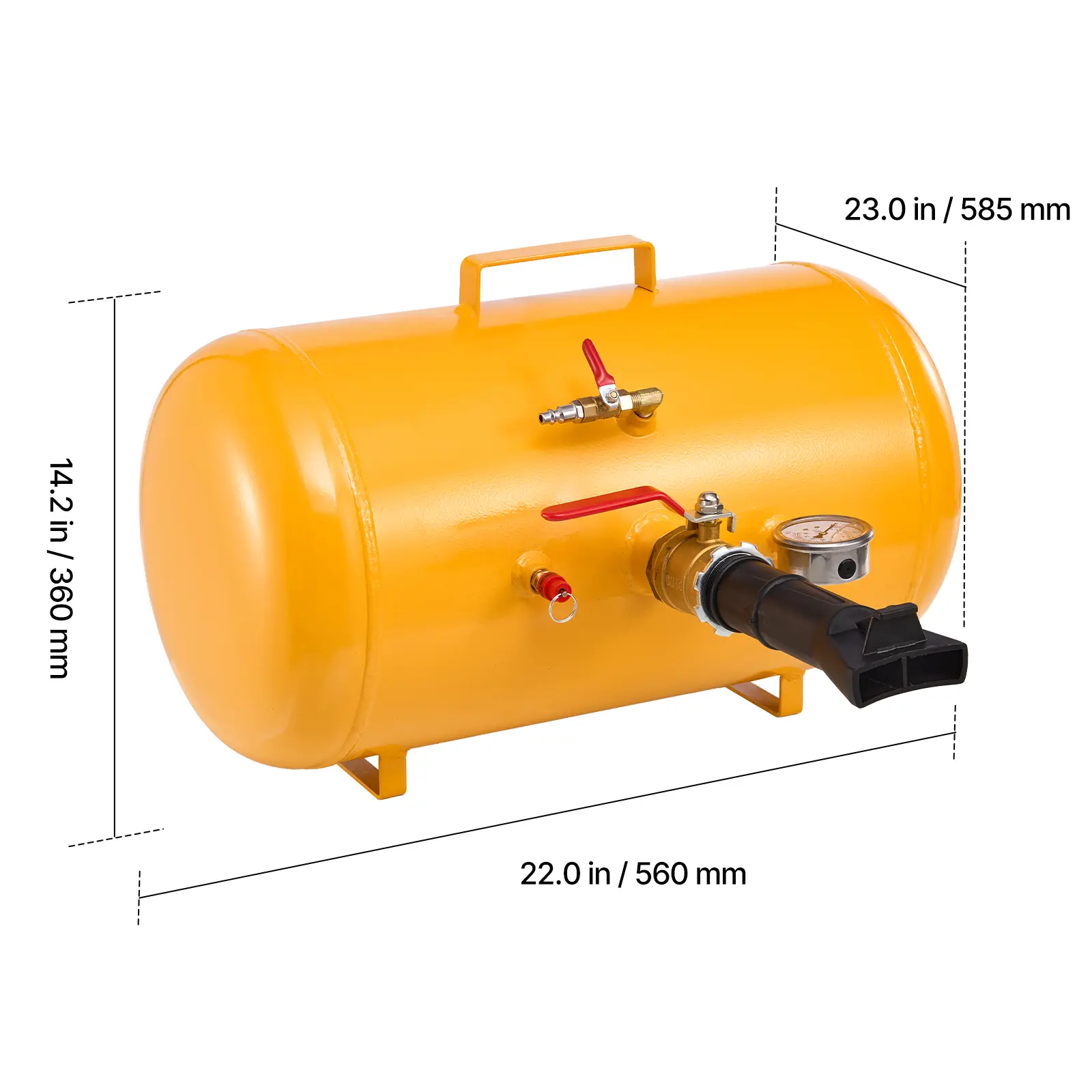 • Tire Compatibility: 10 Gal / 37.9 L cylinder, fits tubeless tires ≤ 24.5 in / 622 mm. Operating pressure: 87–116 PSI / 0.6–0.8 MPa. Suitable for ATVs, tractors, pickups, trucks, Jeeps, campers, and construction vehicles. Ideal for home garages, workshops, farms, and service stations