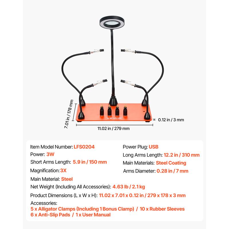 • 2-in-1 Upgraded Helping Hands Soldering Station: It includes a 3X magnifying lamp for clear, accurate detail work, making it suitable for close-up tasks.