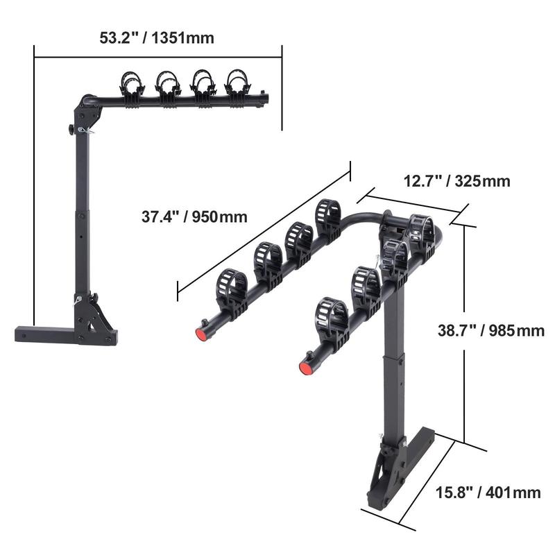 • 150 LBS Max Weight Capacity: Our hitch bike rack is made of heavy-duty steel that can handle up to 150 lbs weight. Each rack can carry up to 37.5 lbs; the 4-bike rack hitch mount is perfect for most mountain and off-road bikes.