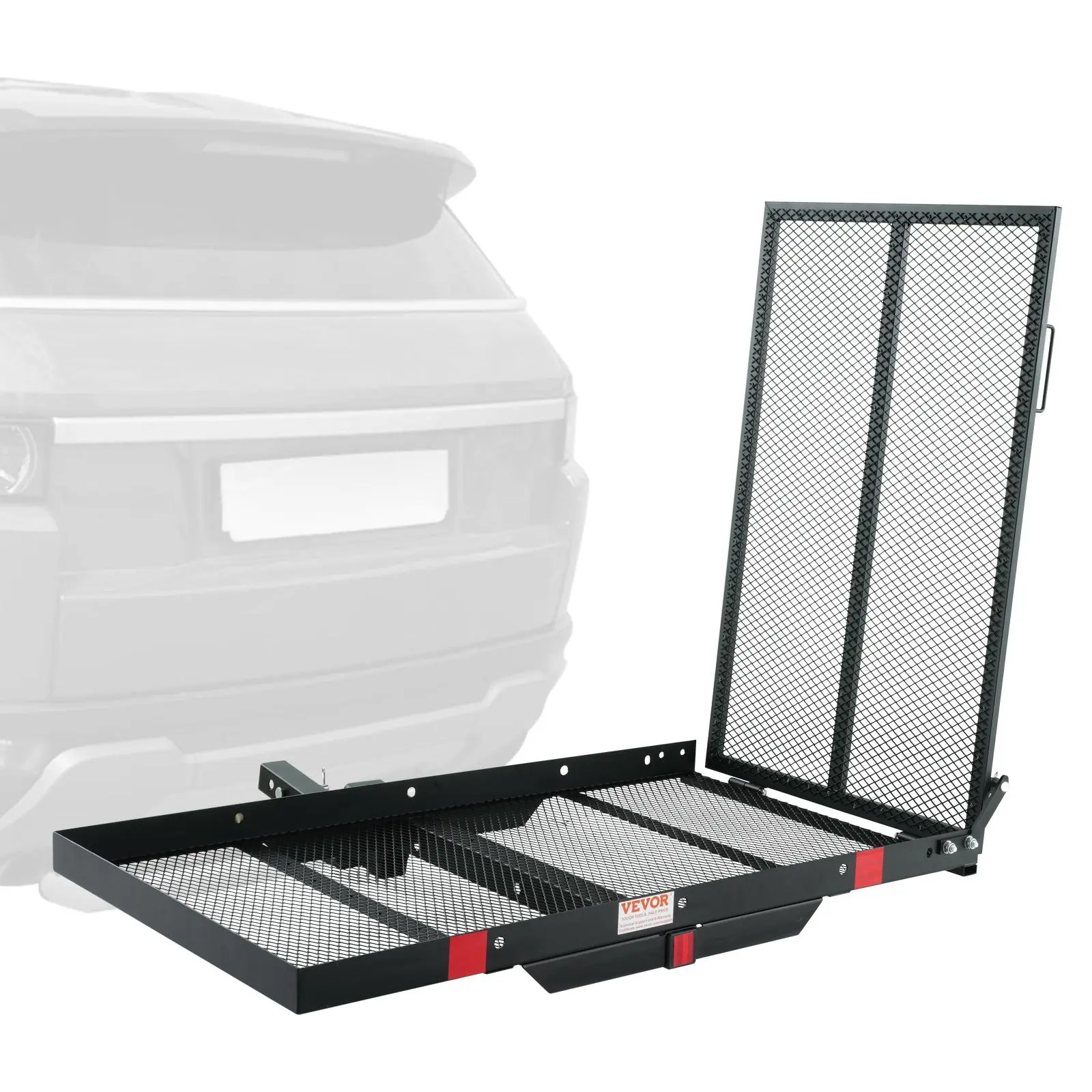 • Enhance Your Mobility: Say goodbye to heavy lifting! Our hitch mount wheelchair carrier, with 45.3" x 25.6" large inside loading area, effortlessly handles loads of up to 500 pounds, whether you're transporting your scooter or gearing up for an adventure. We've got your back!