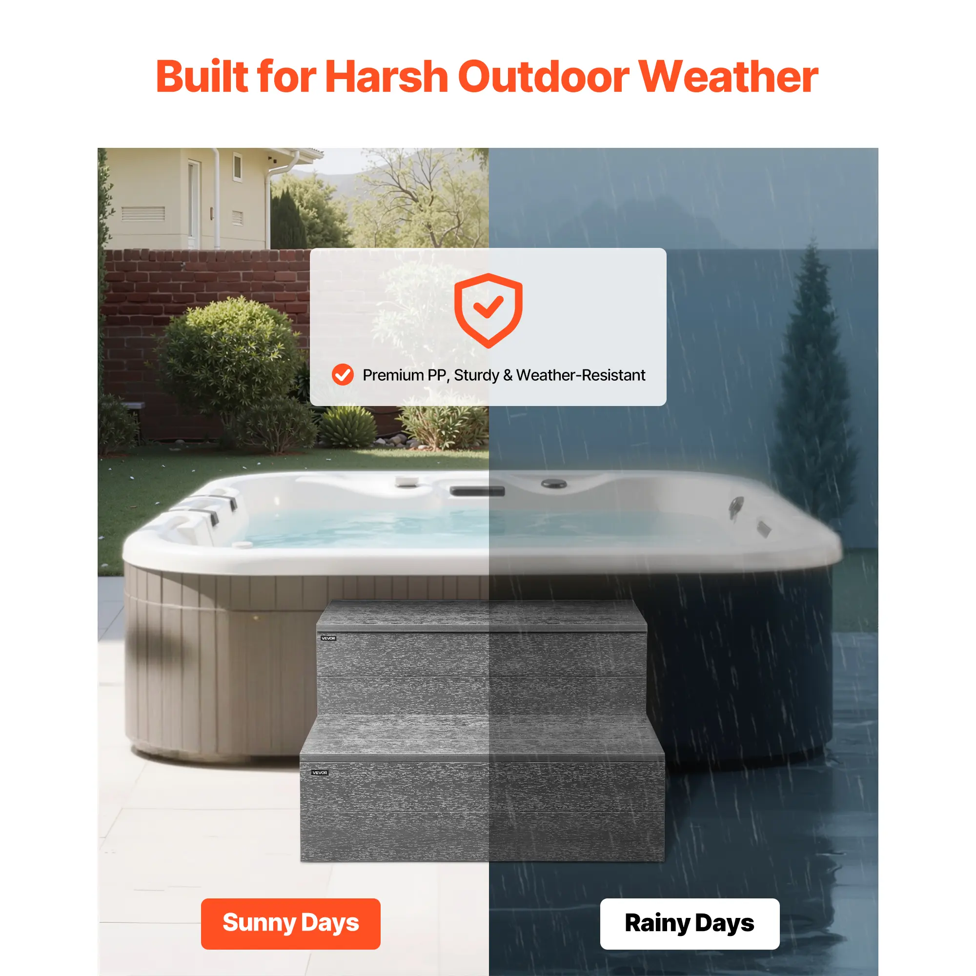 • Built For The Elements: Premium HIPS resists aging and deformation, engineered for year-round use as hot tub stairs without fading performance in sun, rain, or snow. Set it and forget it for year-round reliability
