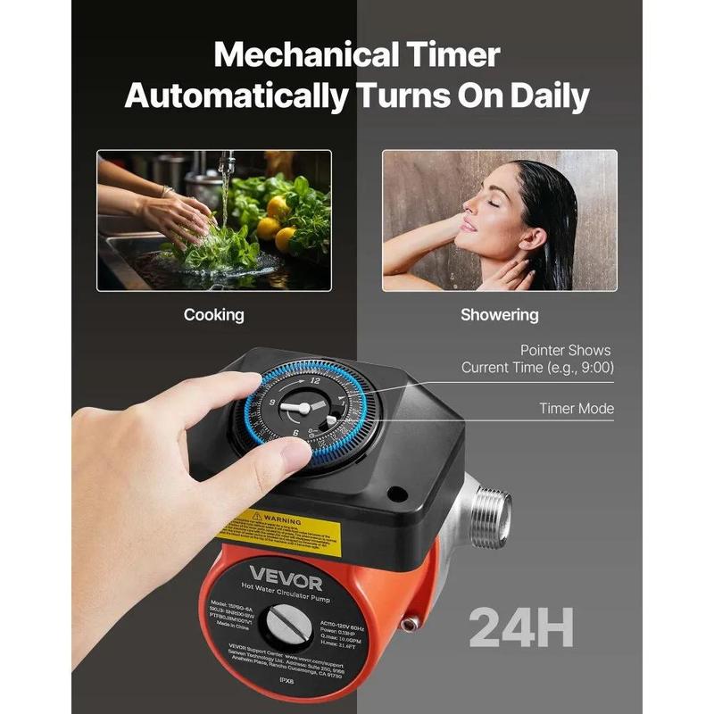 ·Customizable Schedule: The built-in mechanical timer allows you to program when the hot water circulation pump runs. Customize your hot water supply to match your household’s daily schedule, ensuring comfort while saving energy.