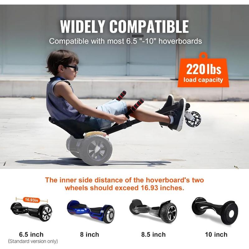 VEVOR Hoverboard Seat Attachment, Adjustable Frame, 220 LBS Capacity, Fits 6.5 8 8.5 10 Hoverboards, Go Kart Accessory for Kids AdultsVEVOR Hoverboard Seat Attachment, Adjustable Frame, 220 LBS Capacity, Fits 6.5 8 8.5 10 Hoverboards, Go Kart Accessory for Kids Adults