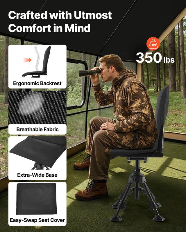 Featuring a dual silent rotation system, this hunting blind chair provides smooth, quiet movement. The 360° swivel allows you to track targets effortlessly in any direction, minimizing noise and shake. Ideal for precise tracking during hunts.