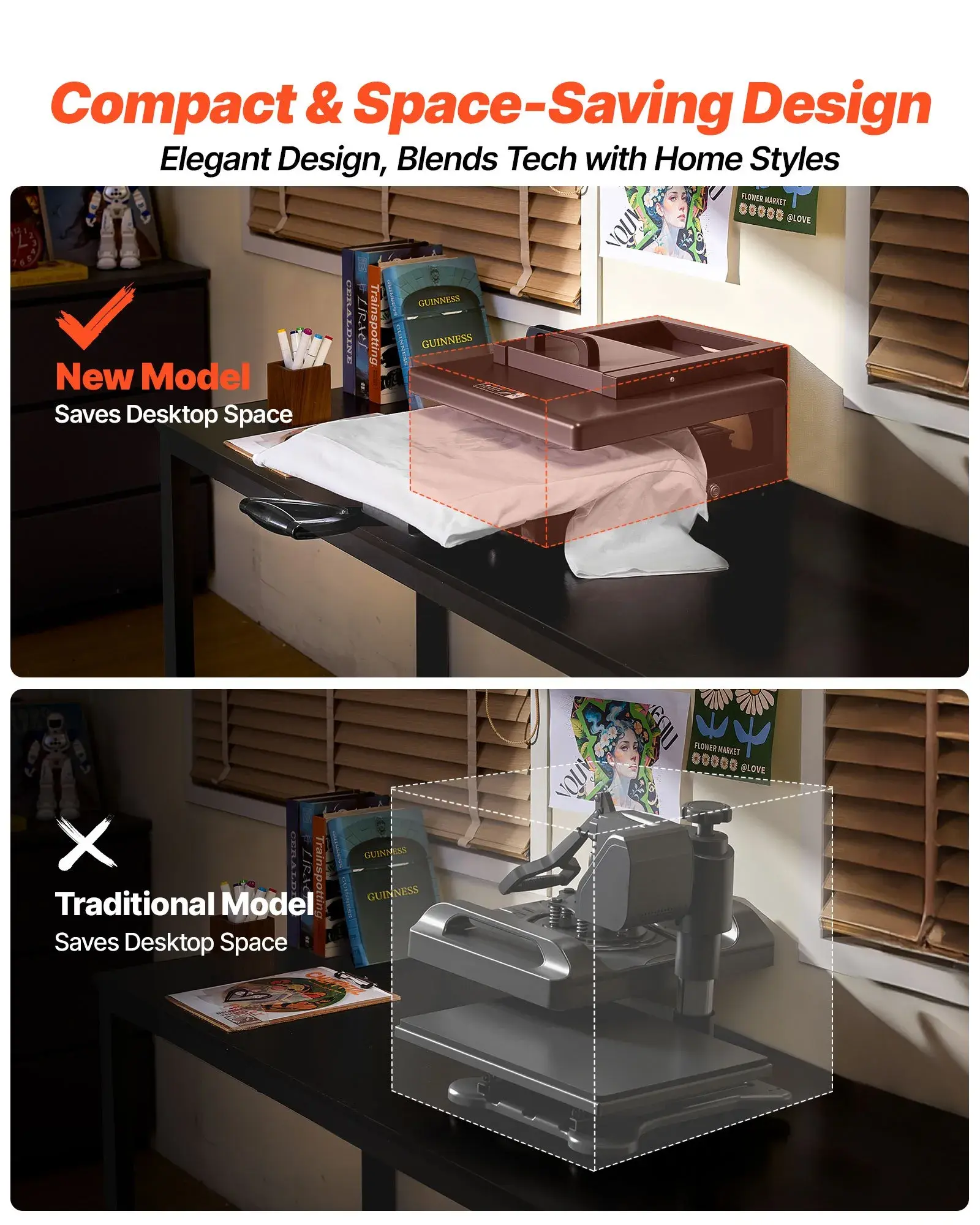Our t-shirt press features a brand-new patented design—no more one-size-fits-all styles. The black and light green hues easily blend with various decor styles, and it is compatible with all HTV vinyl and heat sublimation projects.