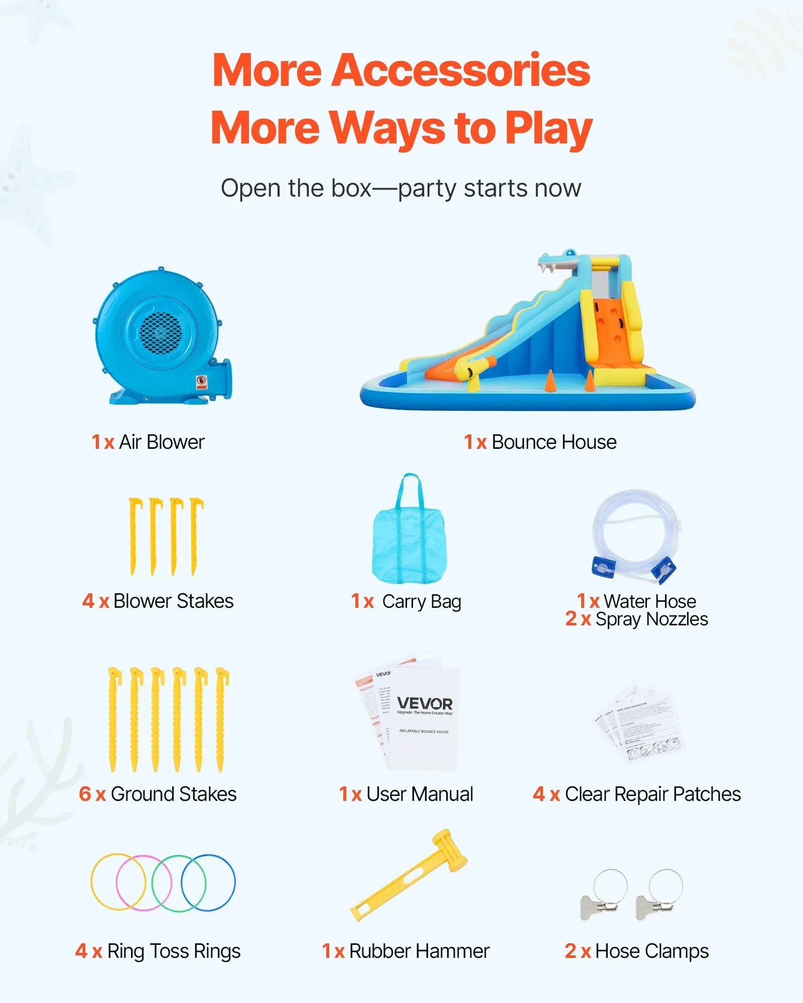 ·Thoughtful Design: The colorful exterior design is created to better match children's preferences and play experiences. This bounce house with water slide includes seamless adhesive repair patches for quick fixes without visual impact. Built for repeated use, it offers long-term play value for families