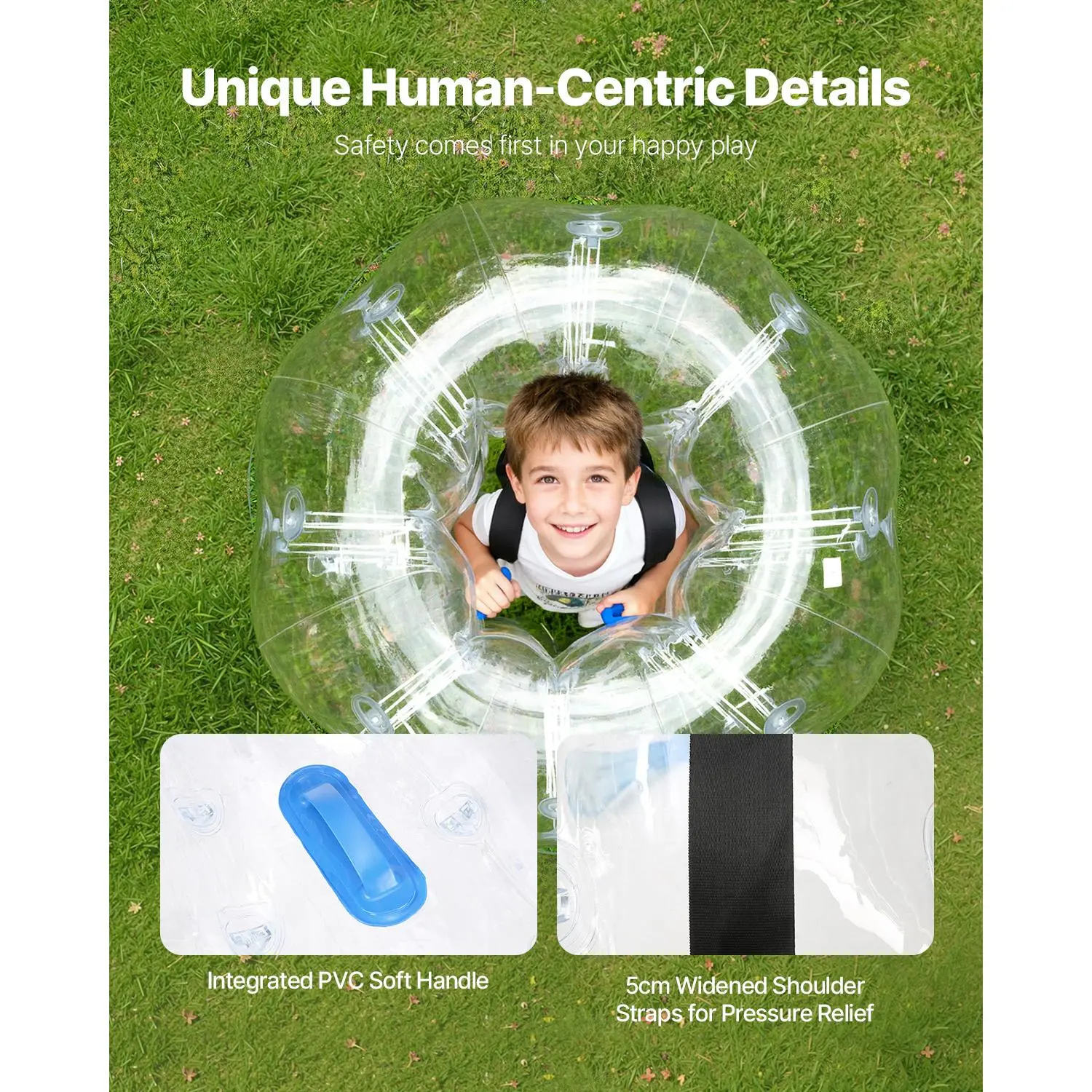 VEVOR human hamster bubble balls are suitable for solo or group entertainment. Enjoy bouncing, bopping, and bumping with friends. Ideal for gardens, backyards, playgrounds, parks, and recreation centers.