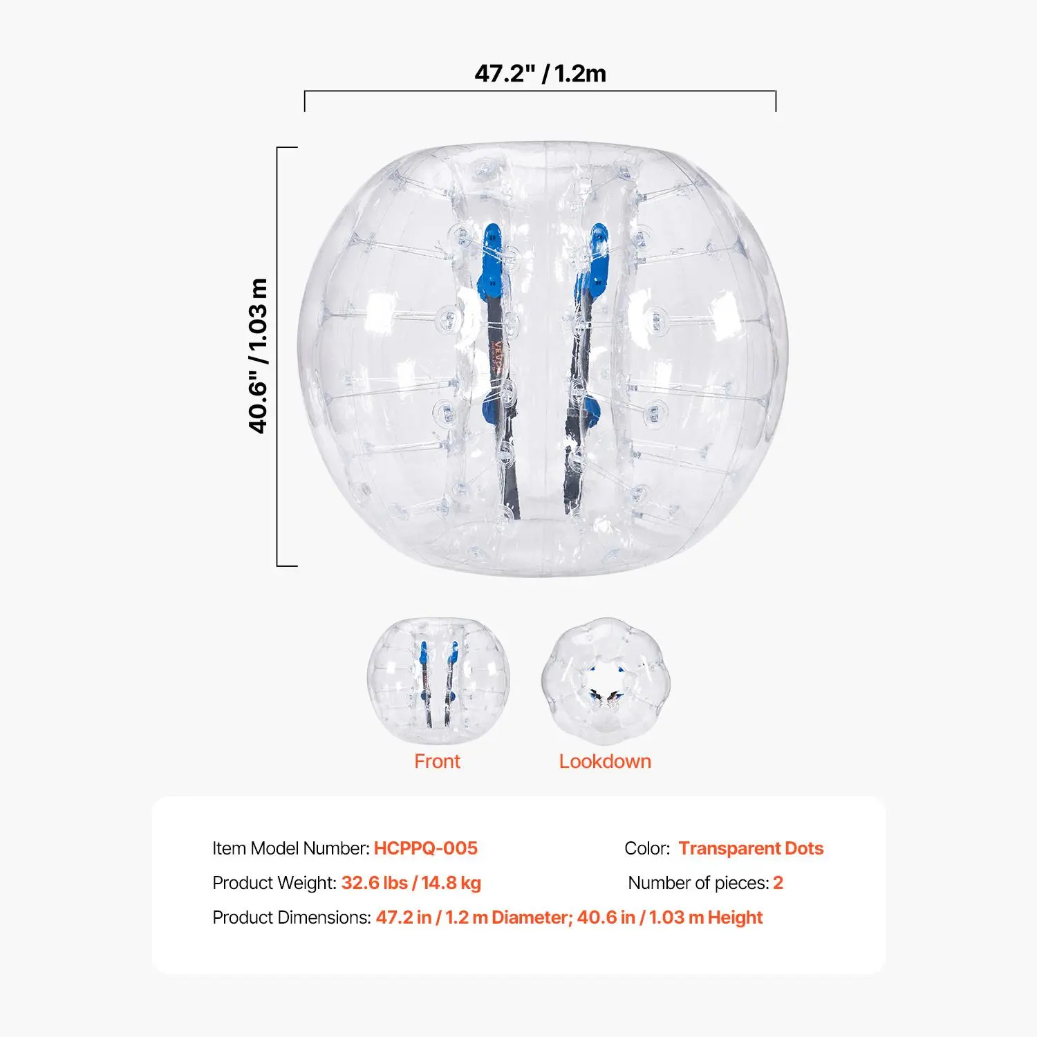 5. VEVOR Inflatable Bumper Balls 2-Pack, , 4FT/1.2M Body Sumo Zorb Balls for Teen & Adult, 0.8mm Thick PVC Human Hamster Bubble Balls for Outdoor Team Gaming Play, Bumper Bopper Toys for Garden, Yard, Park