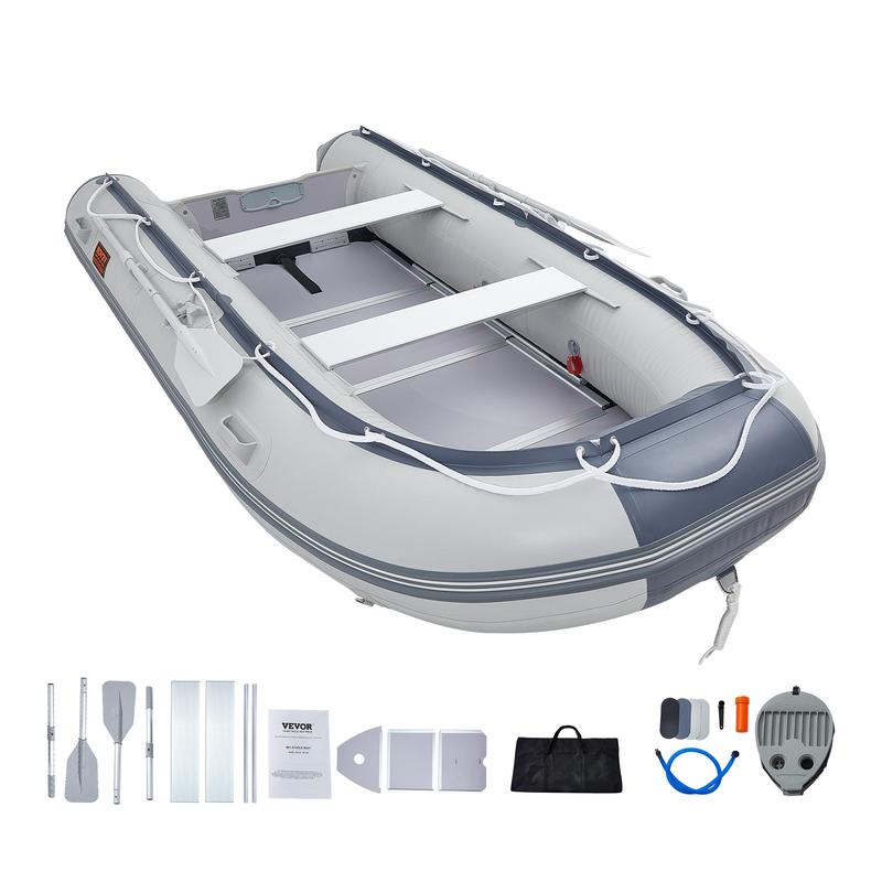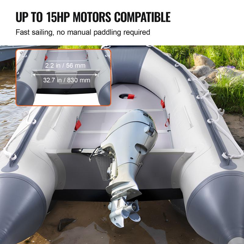 • High-Speed Performance: Designed for lower resistance and energy-efficient navigation, the inflatable boat features a V-shaped hull and an inflatable keel, allowing for flexible steering and effective wave breaking. It accommodates an engine of up to 15 horsepower or an electric towing motor. The inflatable raft comes with 2 pcs 59.8" aluminum oars, enhancing its speed capabilities.