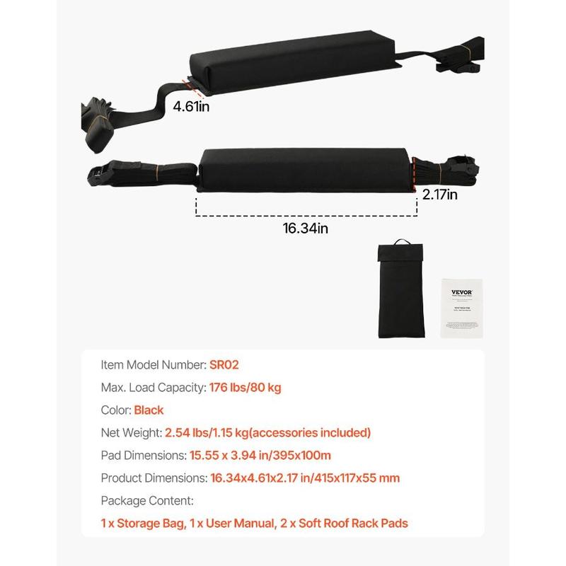 VEVOR Inflatable Soft Roof Rack Bars, 37.6 - Inch Universal Car Roof Rack Pads, 88LBS Loading Luggage Kayak Carrier with 2 Tie - Down Straps Ropes, Hand Air Pump, Storage Bag for Canoes Surfboards SUPsVEVOR Soft Roof Rack Pads, 15.5-Inch Universal Car Roof Rack Pads, 176LBS Loading Capacity Luggage Kayak Carrier with Portable Storage Bag for SUP Canoe Snowboard Paddle Board Surfboard Universal Compatibility Various Vehicle Types Easy Installation Durable and Sturdy Wide