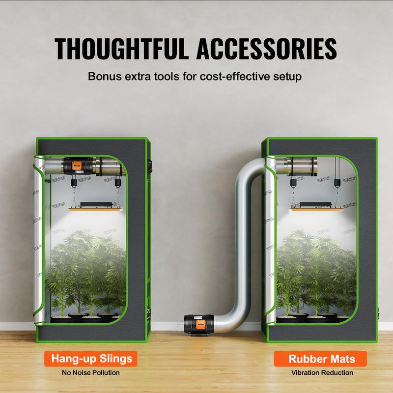 • Everything You Need: To save time and cut costs dramatically, we provide a 8-inch inline fan with hang-up slings and non-vibration rubber mats and straps, so you can finish the installation quickly! You are in control! Choose between hanging it or mounting it on the wall.