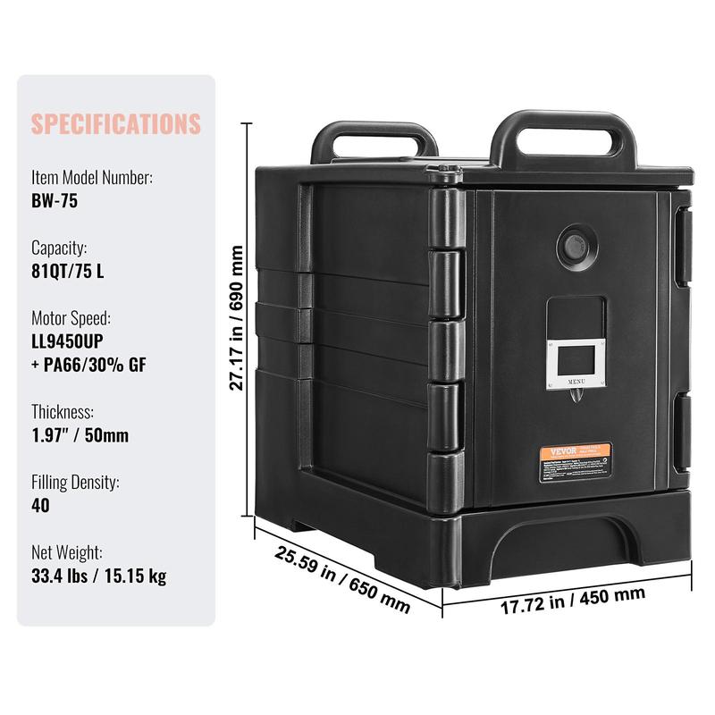 5. VEVOR Insulated Food Pan Carrier, TikTokShopBlackFriday, 81 Qt Hot Box for Catering, Food Box Carrier with Double Buckles, Front Loading Food Warmer with Handles, Stackable End Loader for Restaurant, Canteen