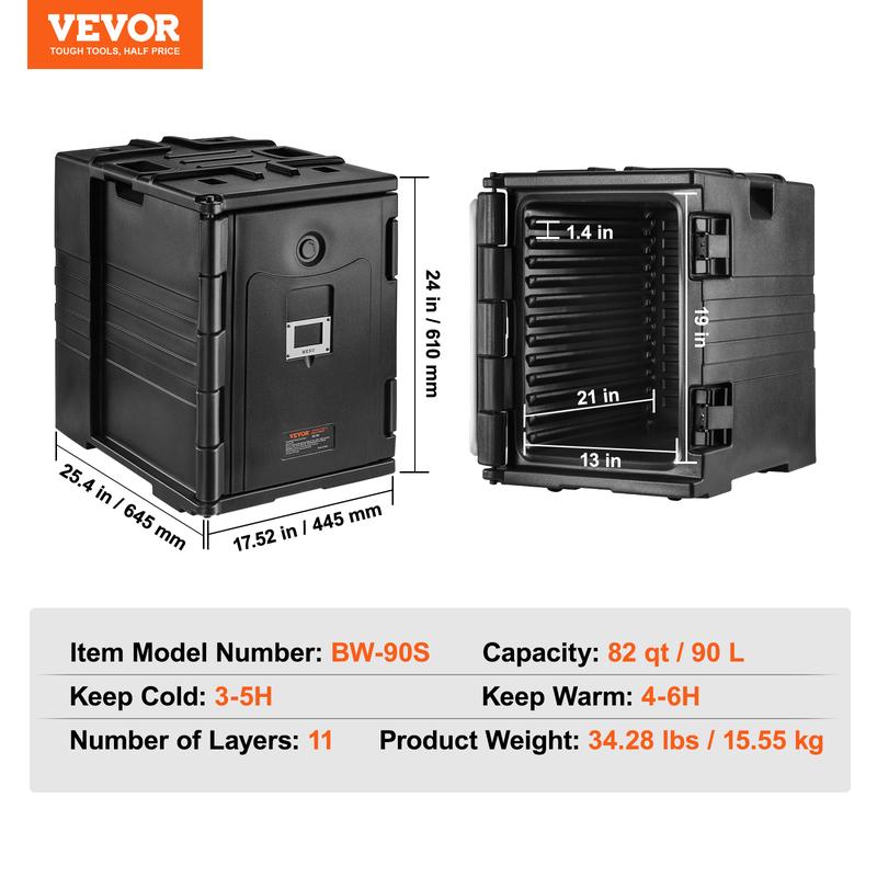 VEVOR Insulated Food Pan Carrier,  82 Qt Hot Box for Catering, LLDPE Food Box Carrier with Double Buckles, Front Loading Food Warmer with Handles, Stackable End Loader for Restaurant, Canteen, etc. Bla