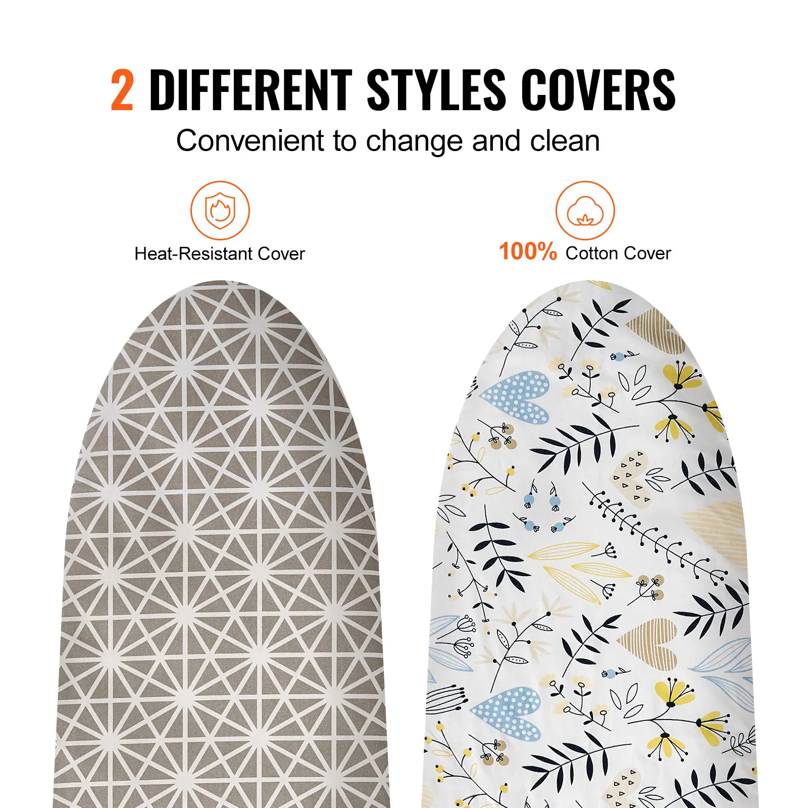 • Two Different Covers: In addition to the heat-resistant cover, we also provide you with a 100% cotton cover for replacement and washing. This 100% cotton cover provides a smooth and soft surface for ironing. It is gentle on delicate fabrics and is ideal for ironing items that require extra care.