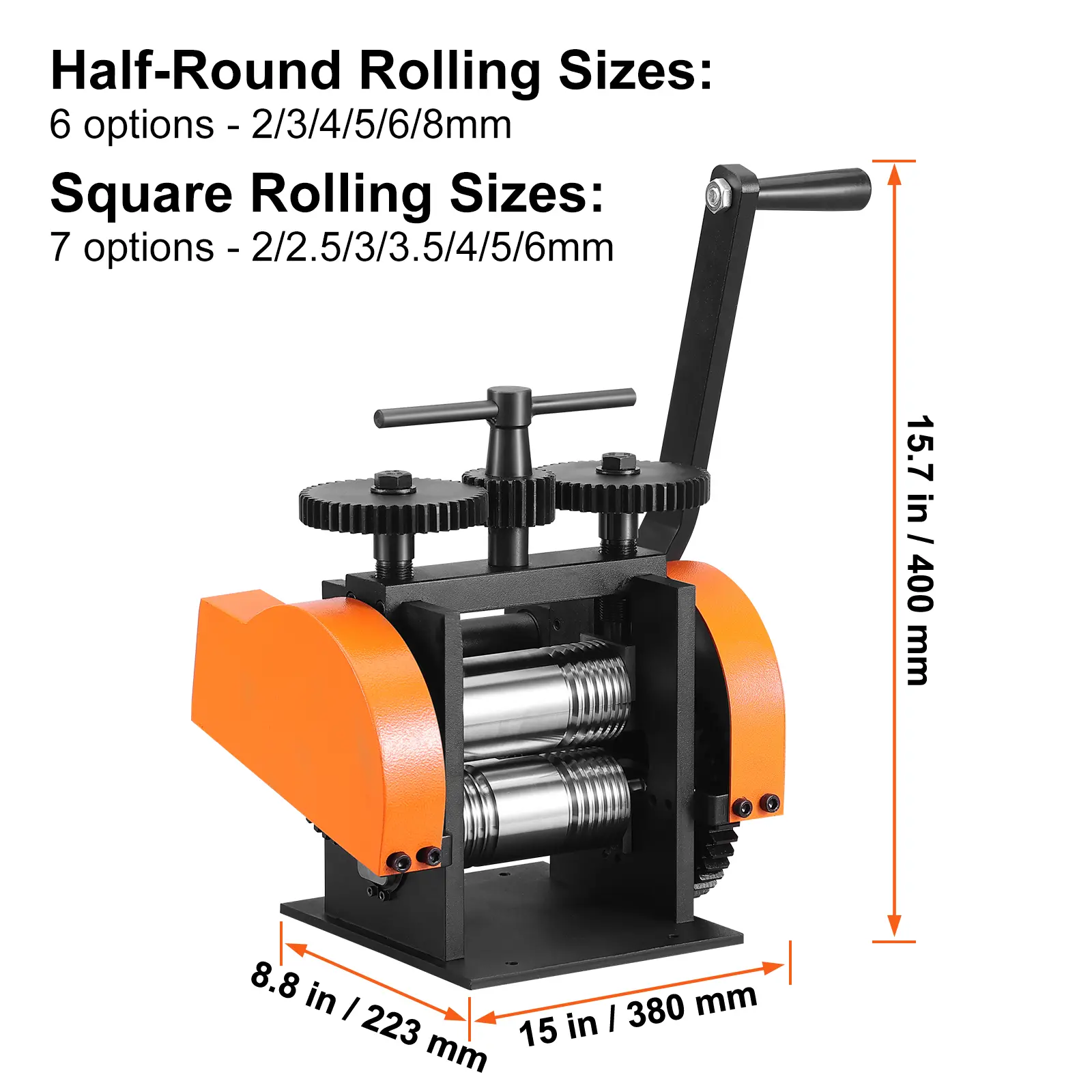 5. VEVOR Rolling Mill, 1.77"/45 mm Jewelry Rolling Mill Machine, 1: 2.4 Gear Ratio, 3-in-1 Multi-function Rolling Mill, 0-6 mm Press Thickness for Metal Jewelry Making Sheet Square Wire Semicircle