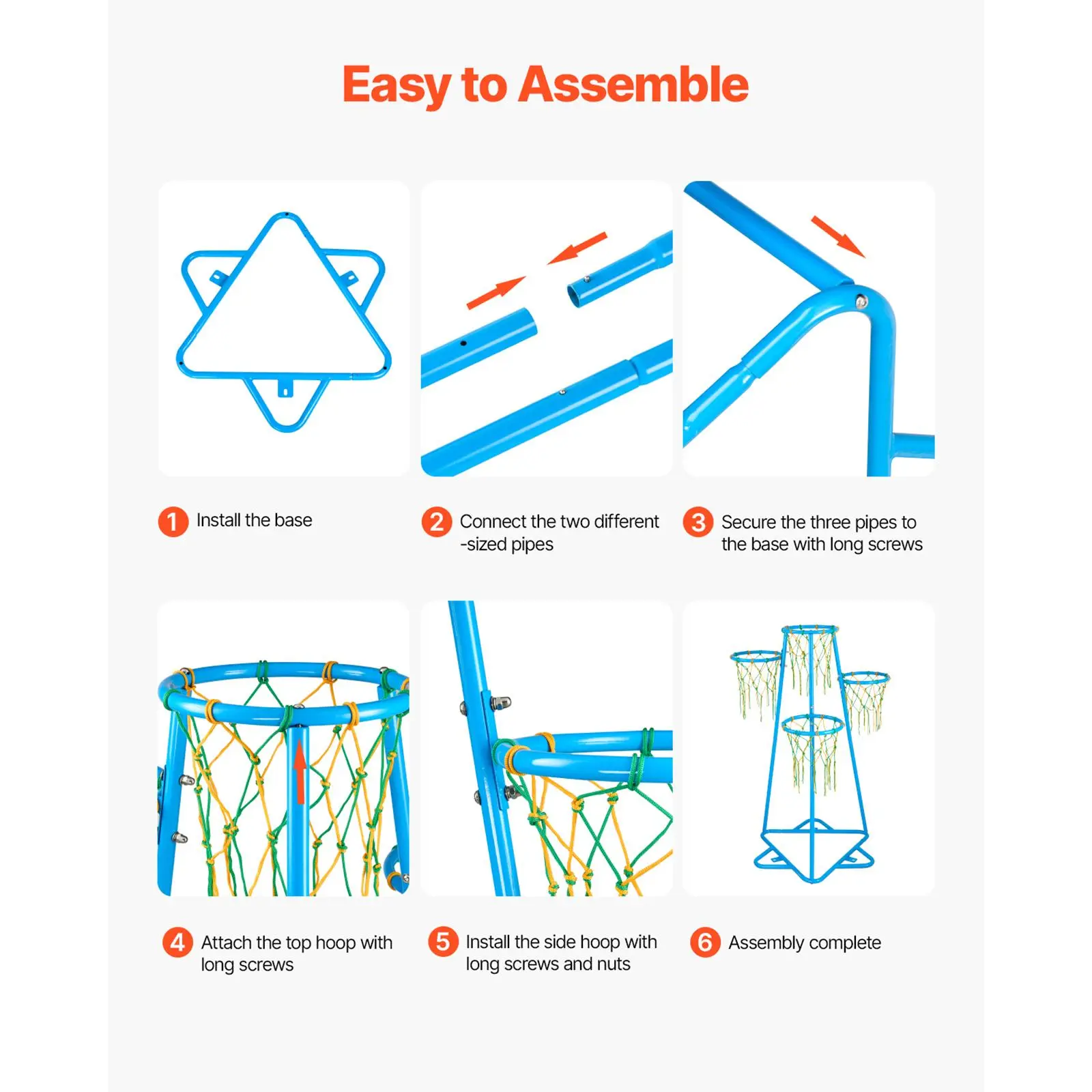 • Reinforced Triangular Base: The frame of the child basketball hoop is made from durable metal and is resistant to rust and wear. The reinforced triangular base greatly enhances stability, avoiding wobbling or tipping during play, ensuring security for kids while they enjoy the game.