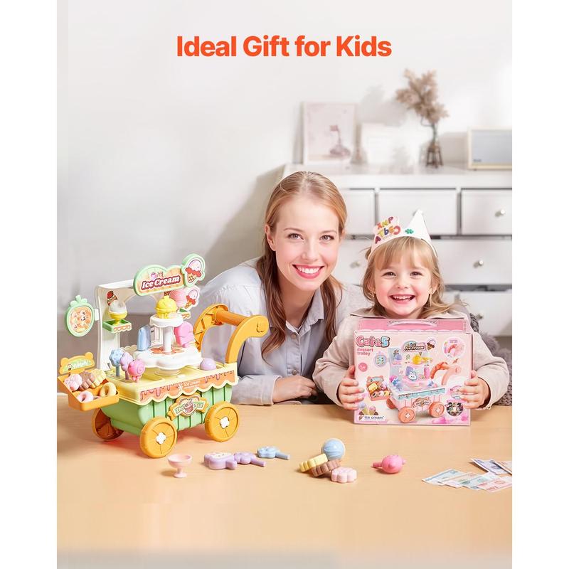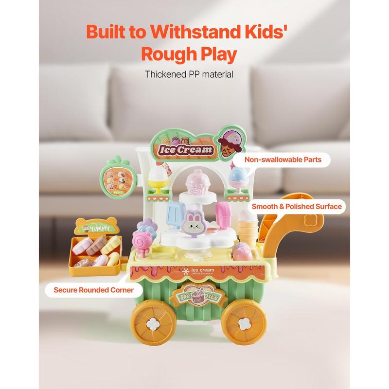 5. VEVOR Ice Cream Cart for Kids, 27 PCS Accessories, Pretend Play Store with Storage Trolley with Pretend Money, Sound & Light Effects, Montessori Educational Ice Cream Truck Toys for Toddlers 3+