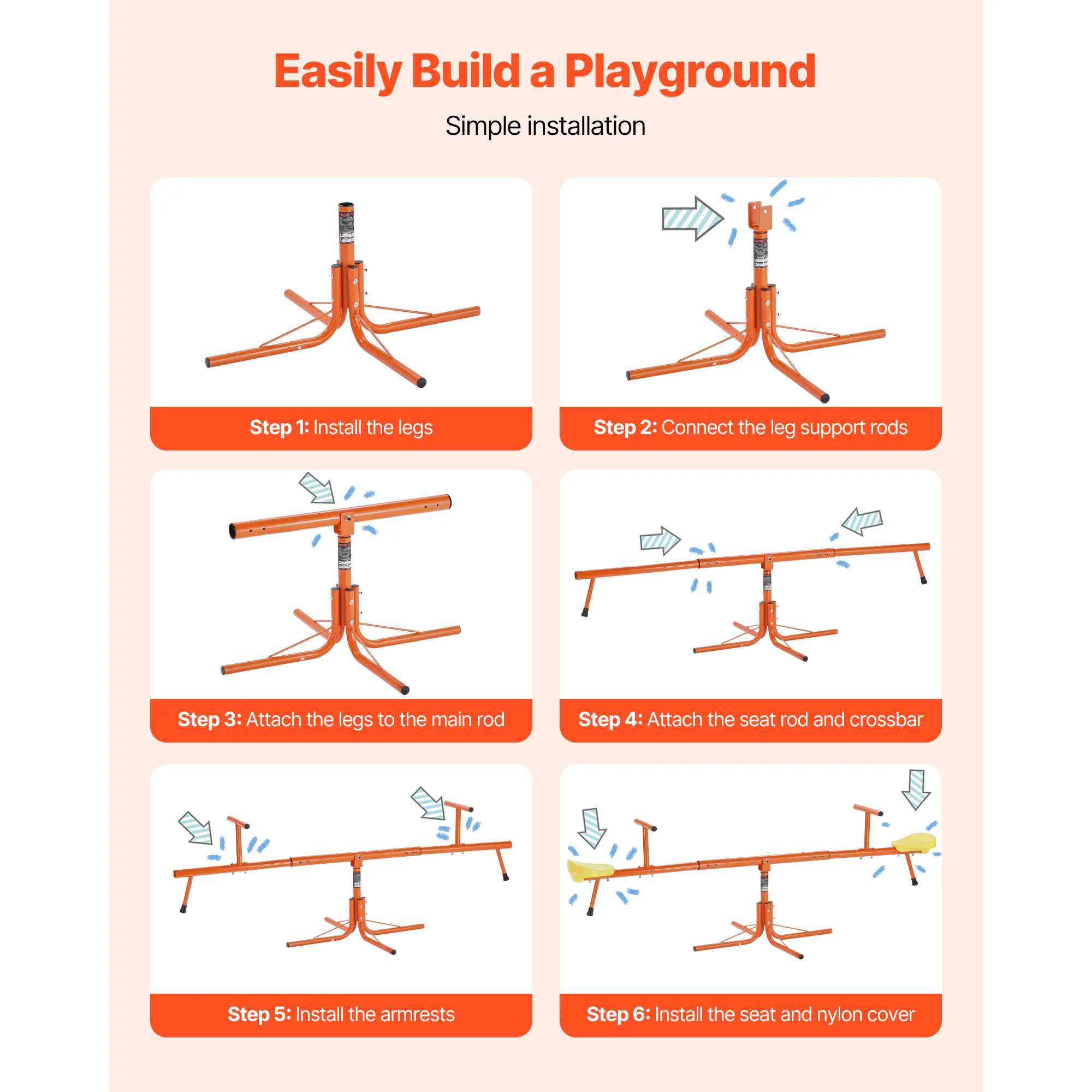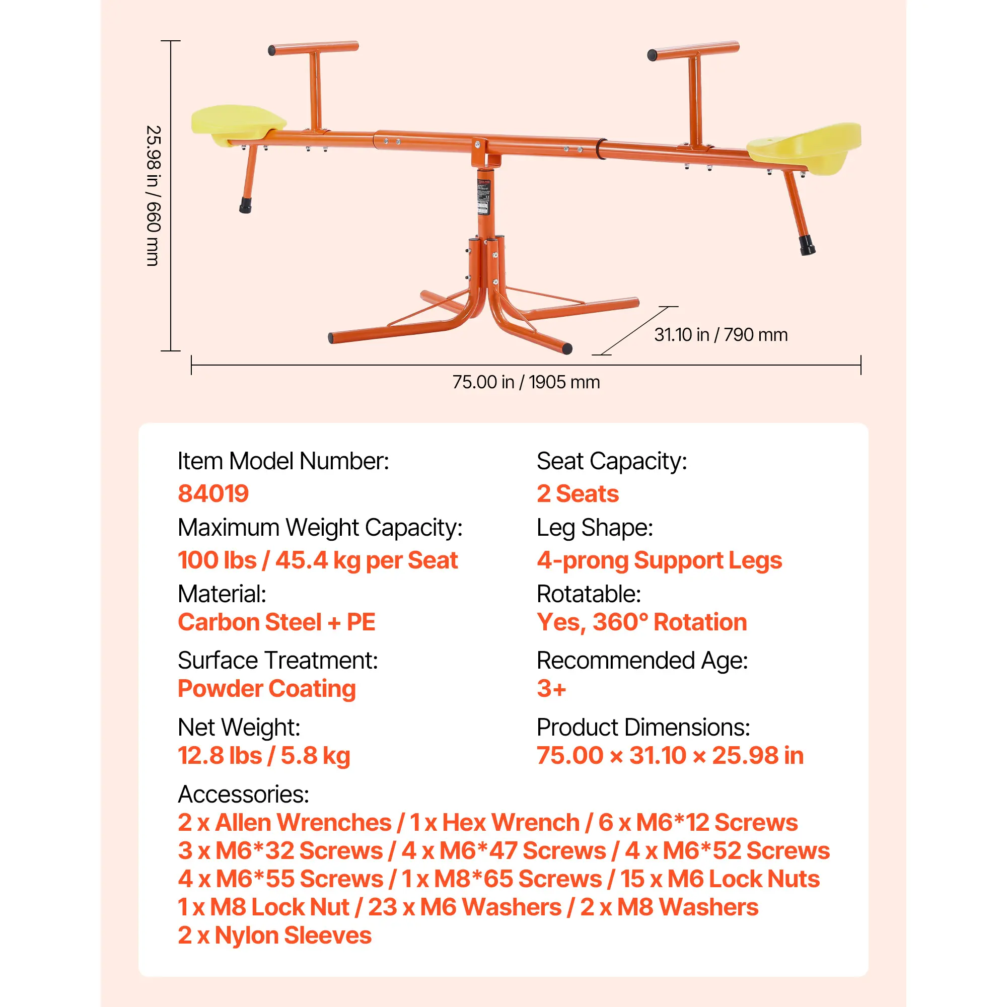 • Durable & Weather-resistant: Made from carbon steel with a powder coating, this kids teeter-totter supports up to 100 lbs / 45.4 kg per seat. It's waterproof and rust-resistant, ensuring durability for years of play, rain or shine
