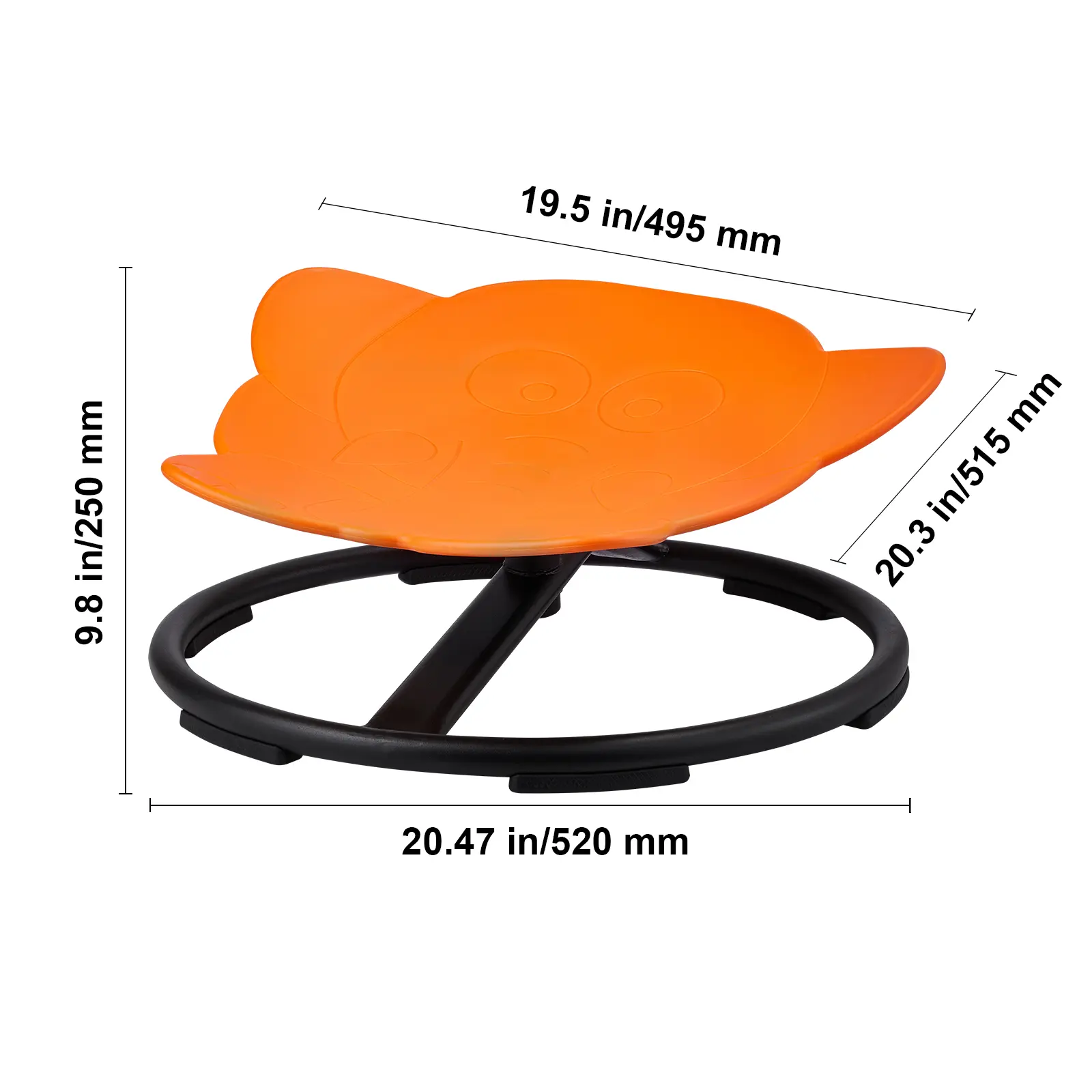 • Secure Materials: We prioritize security with eco-friendly PP material, molded in one piece. The edges are carefully polished for smoothness, preventing injuries. The recessed sensory seat provides comfort, and the thickened edges offer a secure grip for kids while spinning.