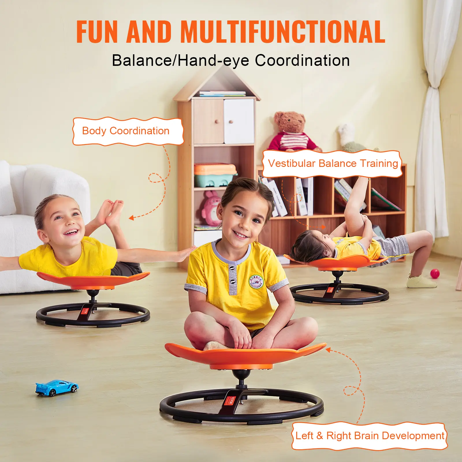 • Multiple Fun Ways to Play: More than a fixed kids spinning chair, kids can sit, lie down, spin, and play in various ways, creating their own fun. Parents can join the fun too, making it a great parent-child interactive toy.