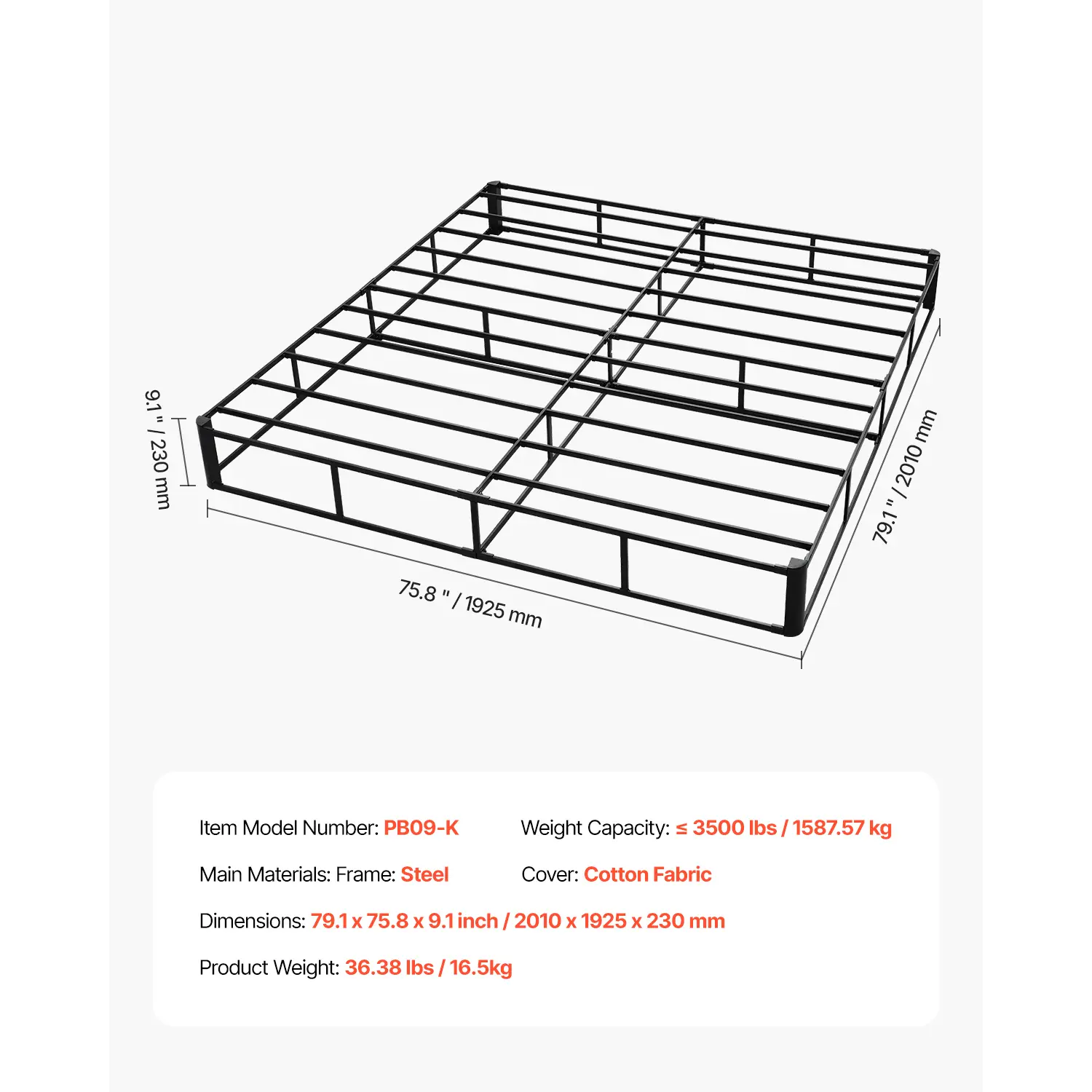 • High Profile Design: With a height of 9 in, it’s ideal for lower mattresses or customers who prefer their bed higher off the ground, offering comfort and convenience.