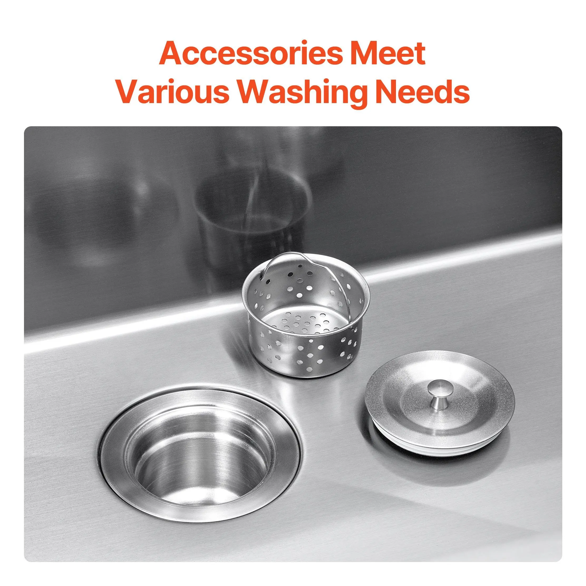 ·Quick Drainage System: Featuring a sloped bottom and X-shaped drain design, this prep bar sink is equipped with a drain kit to ensure quick drainage and prevent water accumulation. The standard drain opening fits any garbage disposal unit.