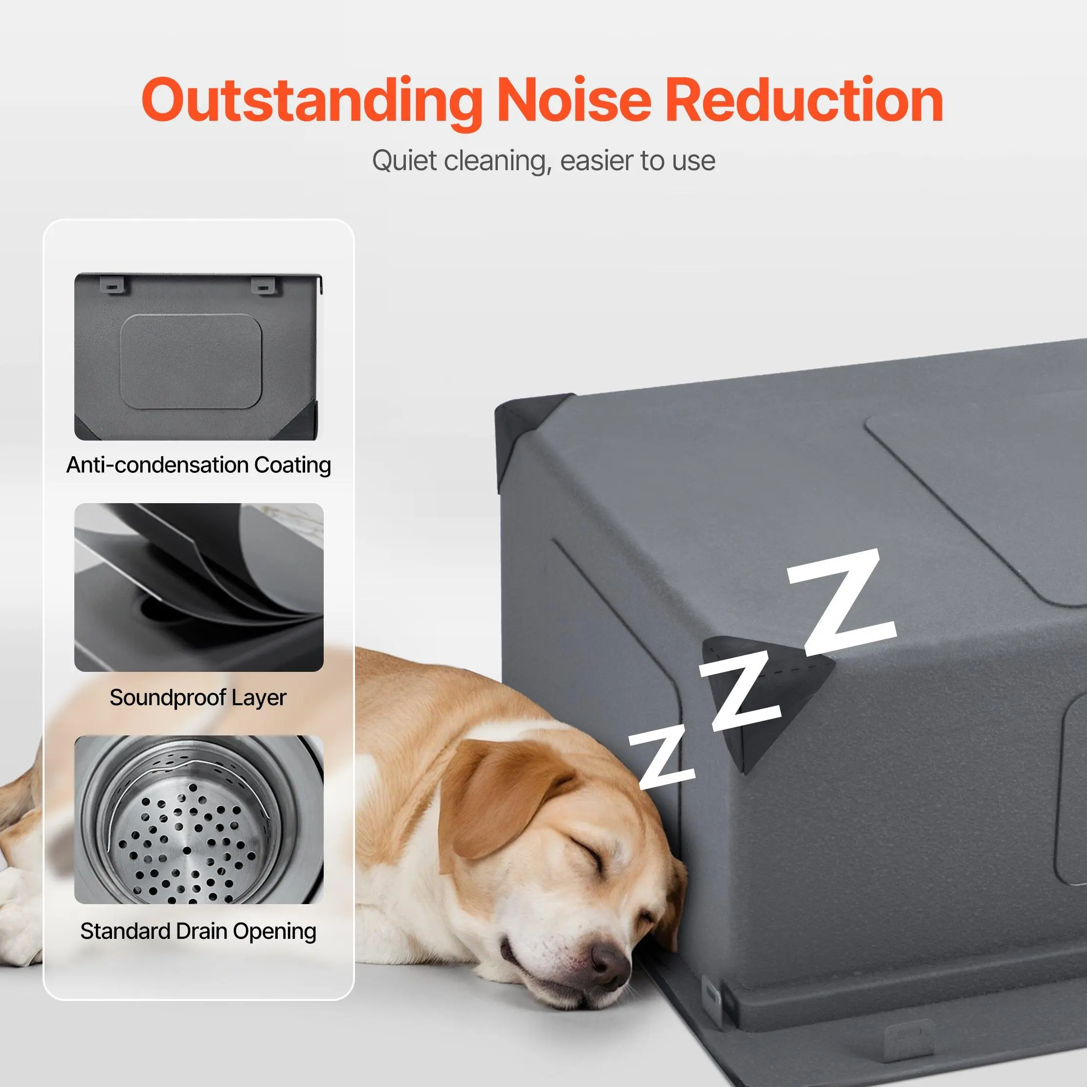 ·Soundproofing and Anti-Condensation Layer: This household dishwasher sink is ultra-quiet, equipped with thicker, softer rubber noise-dampening pads. The soundproof pads and base coat insulation materials reduce noise, ensuring excellent sound reduction and quietness, while the thick base coat prevents condensation.
