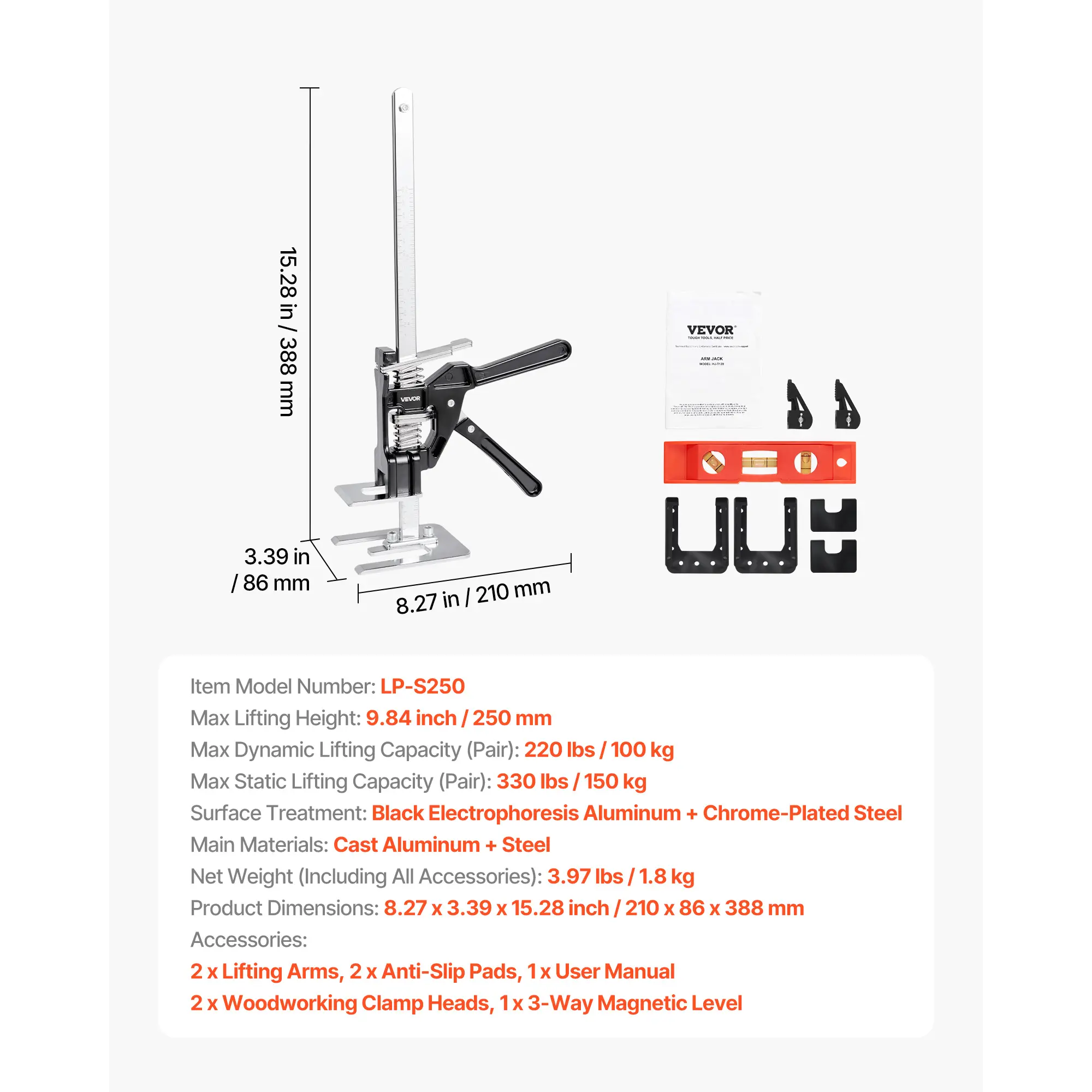 • Quick and Easy Operation: Press the handle to lift heavy items and gently press the plate to lower them. Weighing just 3.97 lbs, it's easy to carry to job sites, letting one person handle tasks meant for two, making work faster and more efficient