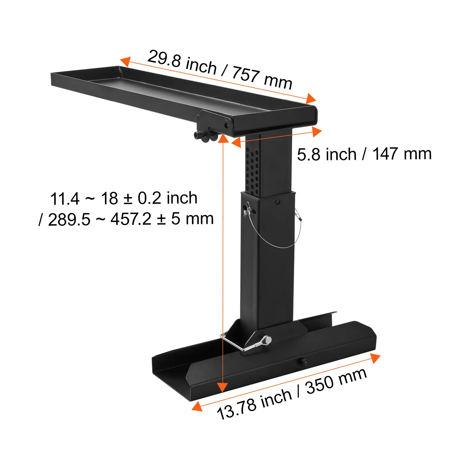 • Easy Leveling: Support Surface Height Range: 11.4-18 inch / 289.5-457.2 mm, Support Surface Length: 29.8 inch / 756.9 mm, Support Surface Width: 5.8 inch / 147.3 mm. This leveler is ideal for various staircases, outdoor terrains, and uneven surfaces. It offers stable support for a safe and reliable experience, regardless of terrain.