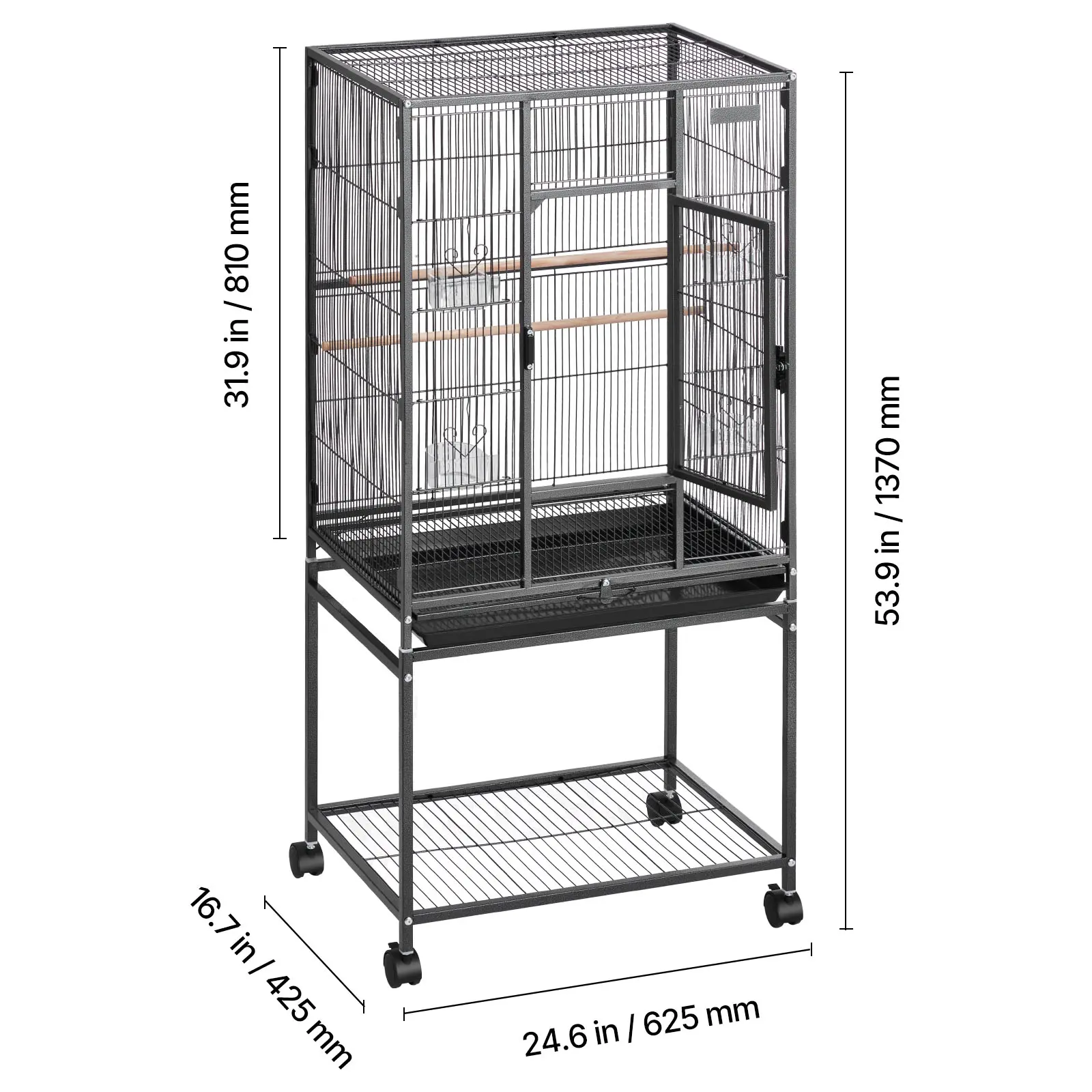 • Spacious Space: Measuring 24.6 x 16.7 x 31.9 in with 0.4 in bar spacing, the bird cage accommodates 3–4 small or medium birds, such as conures, lovebirds, budgies, and canaries. It provides ample space for them to jump and stretch their wings flexibly