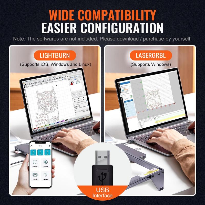• User-Friendly and Compatible: Our laser wood engraving machine boasts excellent software compatibility, connecting to your computer via USB. It is compatible with popular laser engraving software like LightBurn and LaserGRBL (supports iOS, Windows, or Linux systems). Engrave a wide range of materials, including wood, acrylic, paper, leather, fabric, stainless steel, and glass etching. Let your artistic ideas come to life effortlessly.