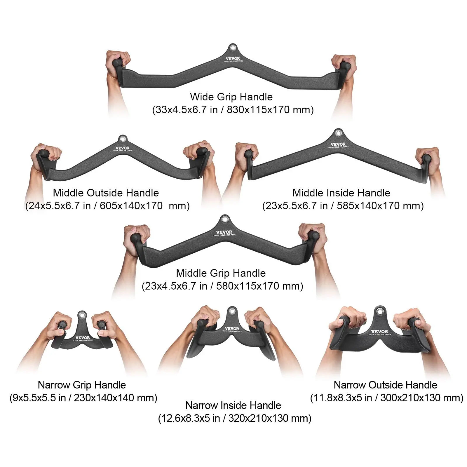 VEVOR LAT Pulldown Attachments, Cable Machine Rowing T-bar V-bar 7 Set, Tricep Pull Down Bar, Back Strength Training Rubber Coated Handle Grip, Bicep Curl Tricep Lat Pulldown Bar for Home Gym Fitness