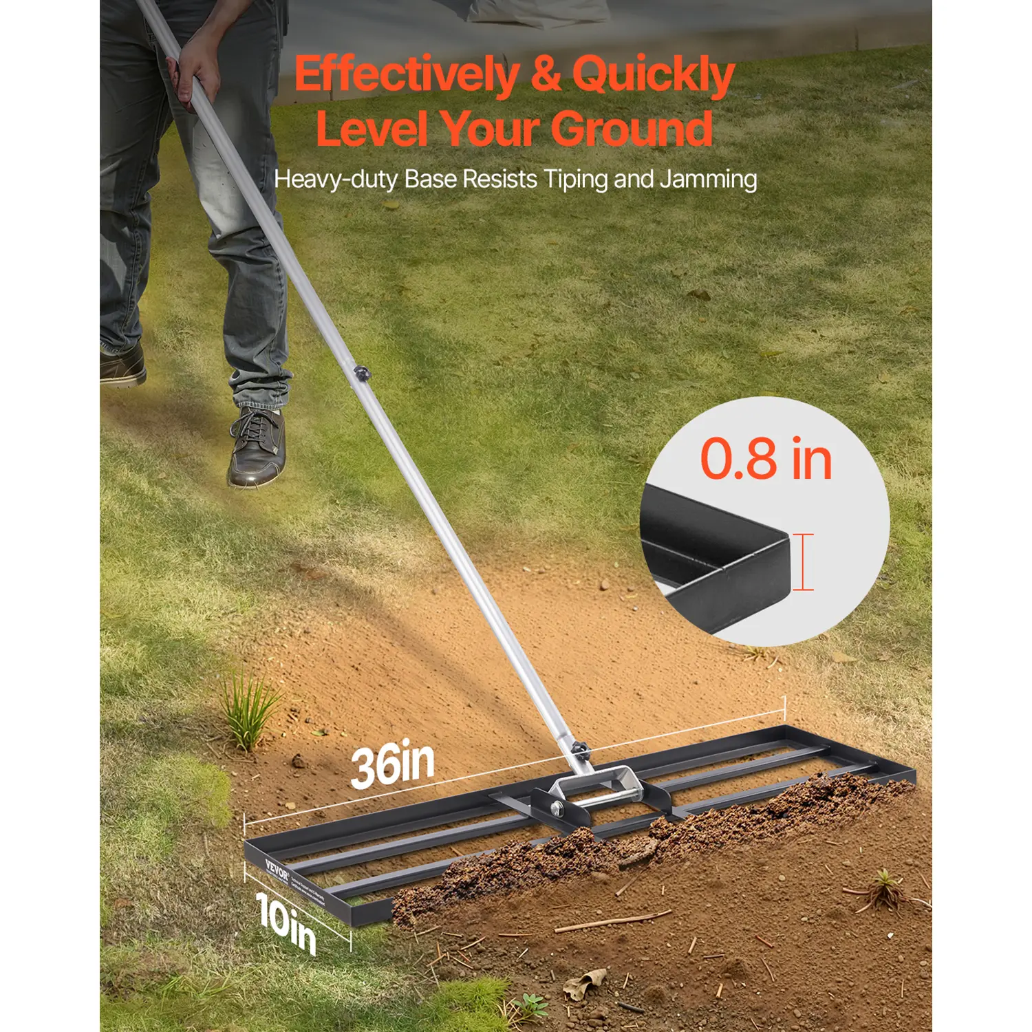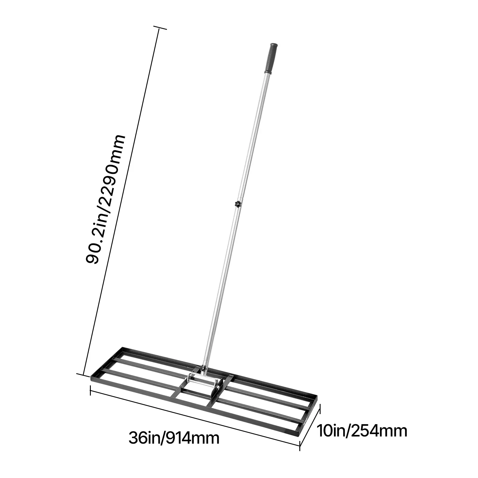 • Large Lawn Leveling Rake: Our lawn leveling tool features a 36x10 in carbon steel ground plate. The total weight of 10.25 pounds enhances the leveling experience and avoids the difficulty of being too light to push, which saves you time and energy by leveling your land quickly and efficiently.