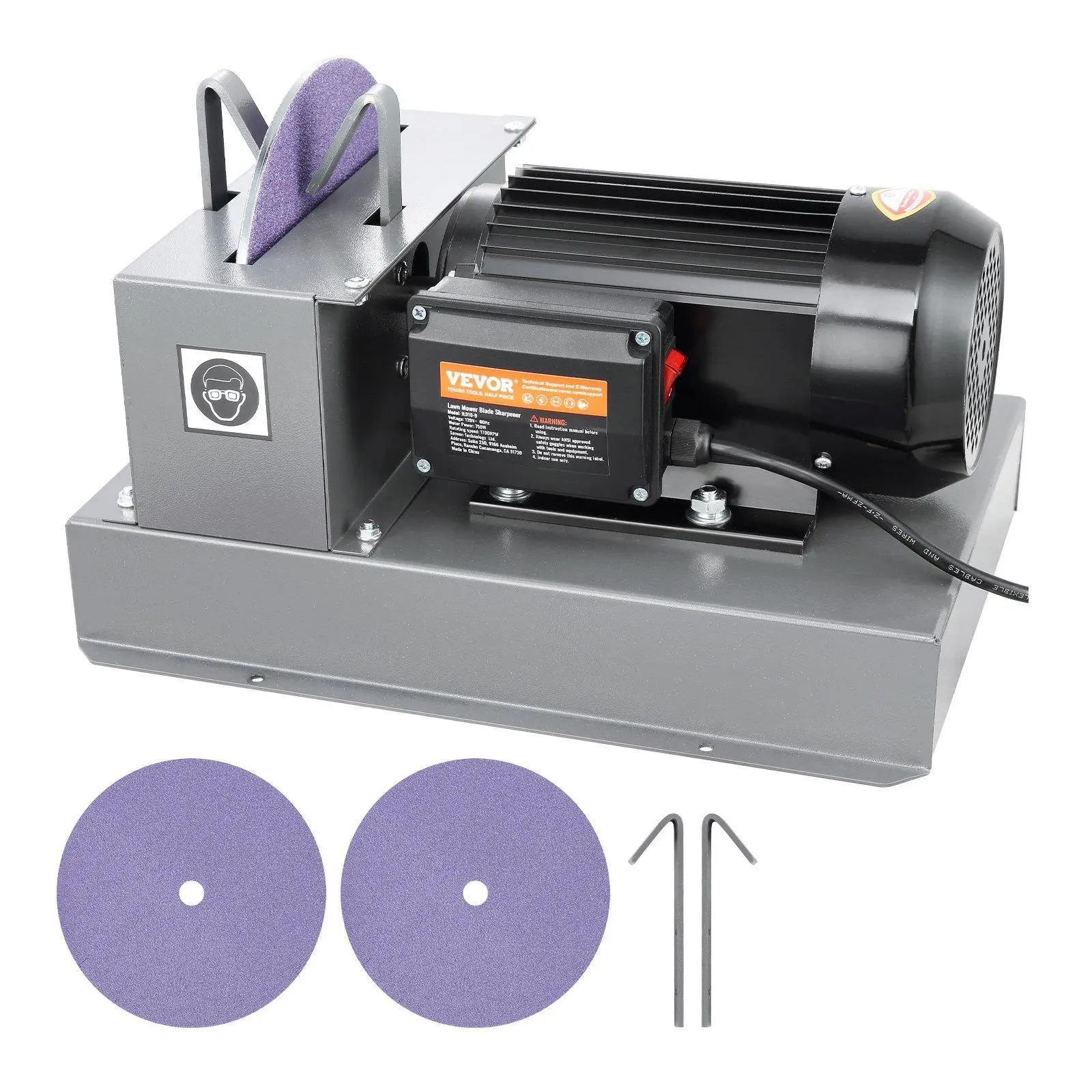 9-inch 60-grit ceramic grinding wheel that efficiently sharpens your blades, while extending their lifespan. We also provide an extra pair of sandpaper for easy replacement. With sharp blades at your disposal, lawn mowing becomes a breeze, making it more efficient and enjoyable!