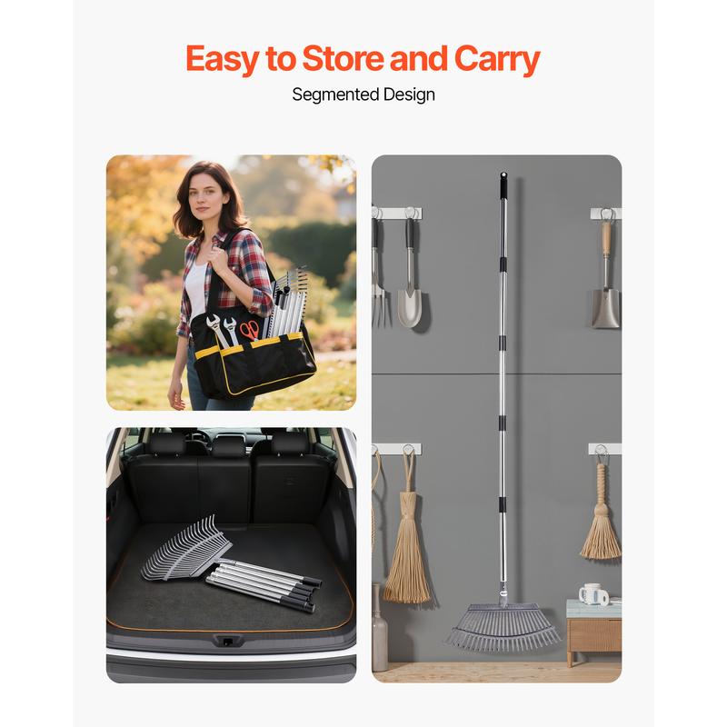 • Portable & Easy to Store: Quick to assemble or disassemble, this rake folds compactly. It fits easily into trunks or storage cabinets, making it perfect for backyards, patios, campsites, and picnic areas.