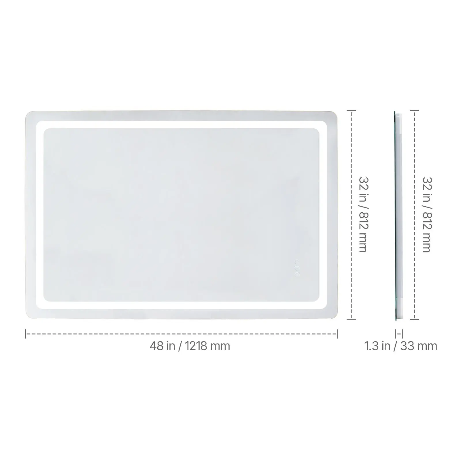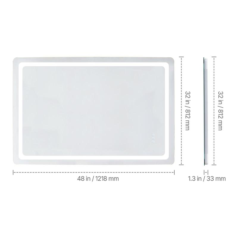 • One-Touch Anti-Fog: This led mirror for bathroom features an anti-fog function that quickly clears misty condensation. Whether in a humid environment or a bathroom after a shower, simply touch the anti-fog button, and the mirror will heat up to a constant temperature within 45s to clear the fog. This function can be turned on or off independently to save energy when not needed.