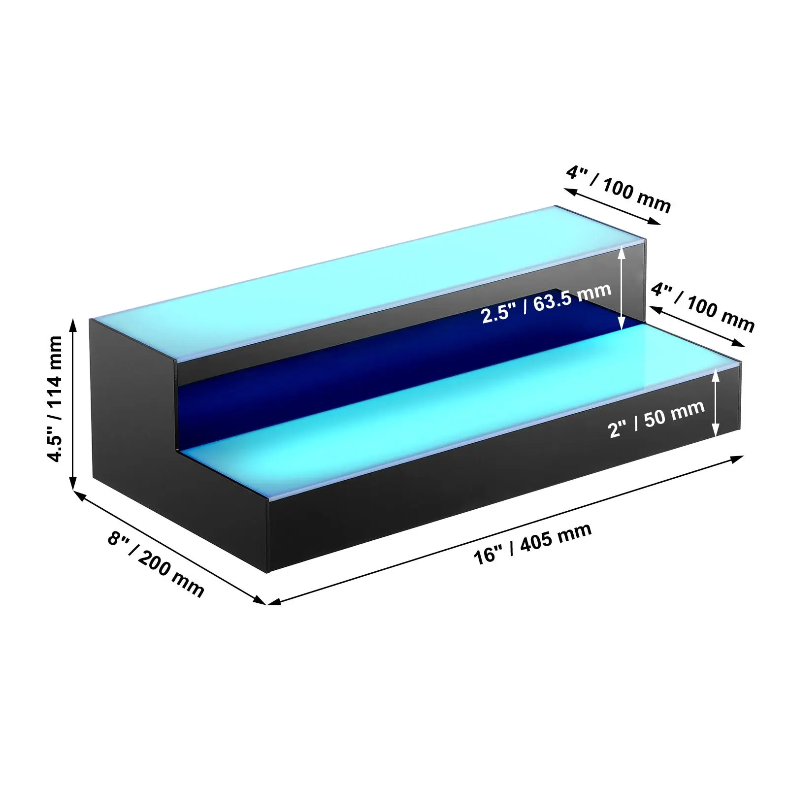 VEVOR LED Lighted Liquor Bottle Display, 2 Tiers 16 Inch Commercial Illuminated Home Bar Shelf, 2 Steps Whiskey Rack Stand, Acrylic Drink Shelves with RF Remote & App Control, and Multicolor lighting